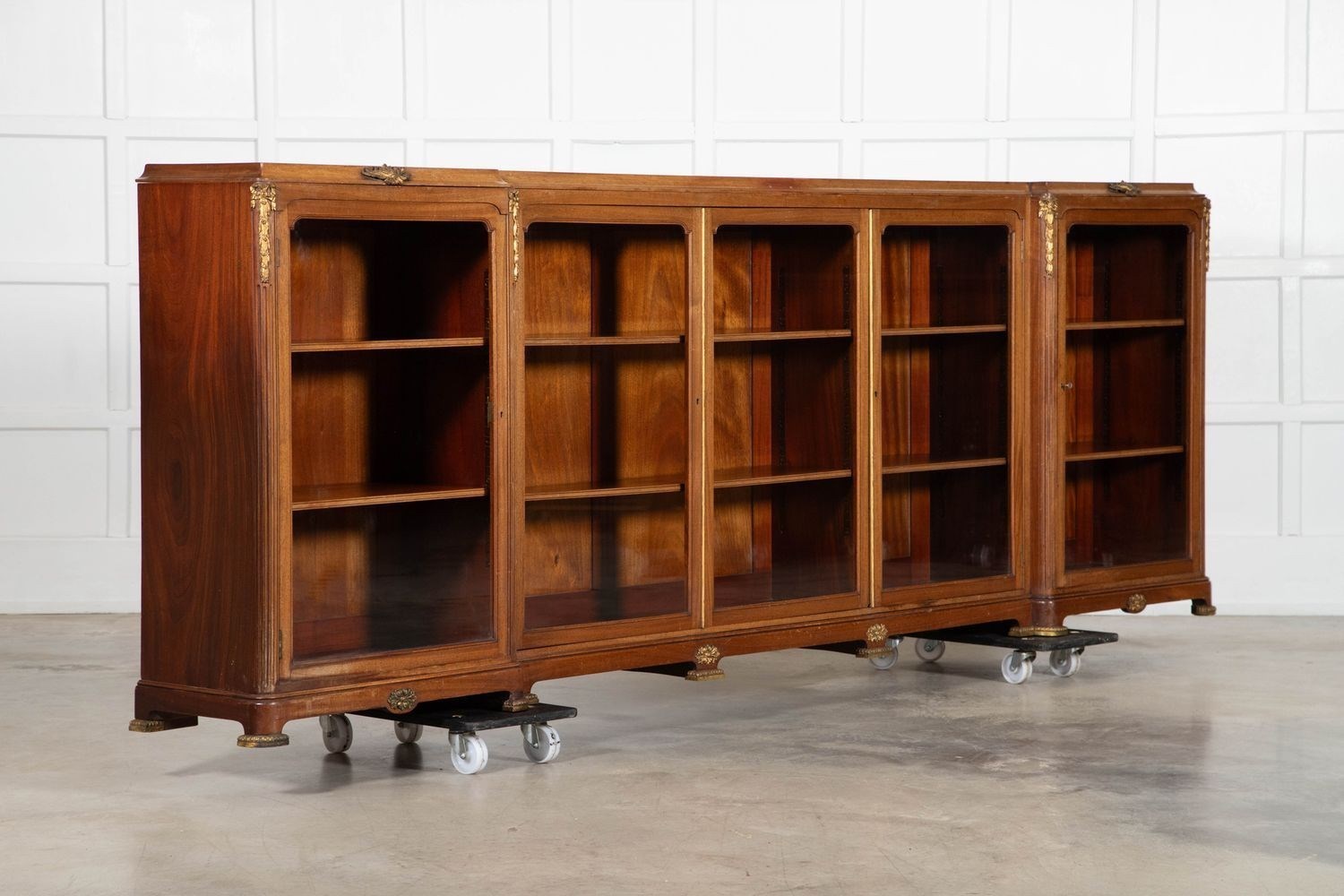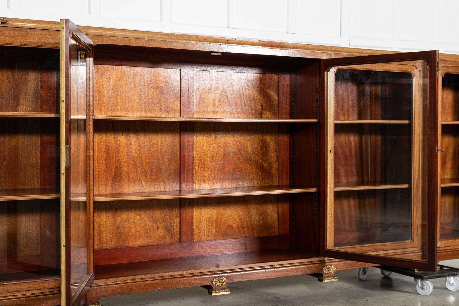 Monumental 19thC French Walnut Breakfront Glazed Bookcase