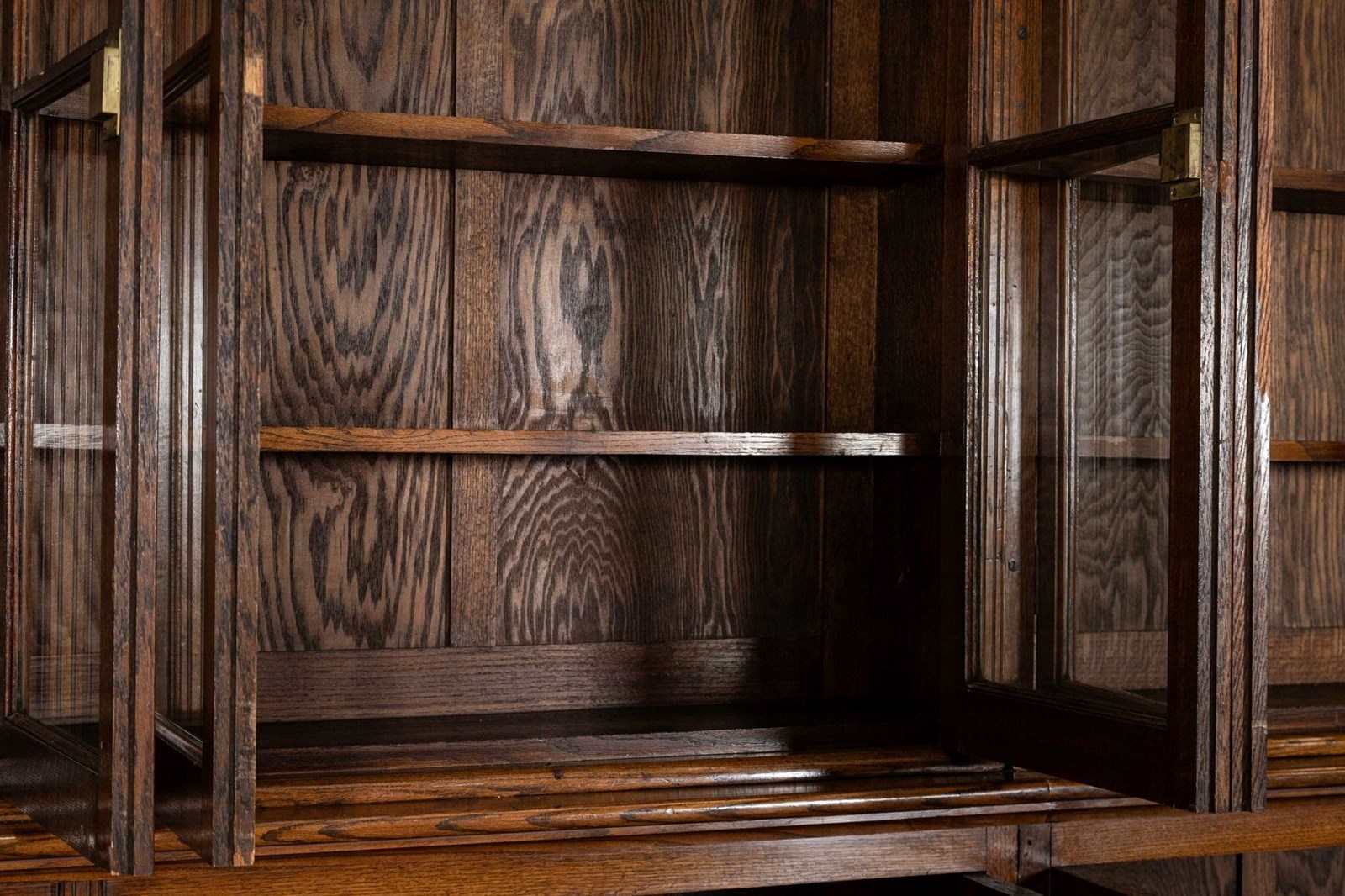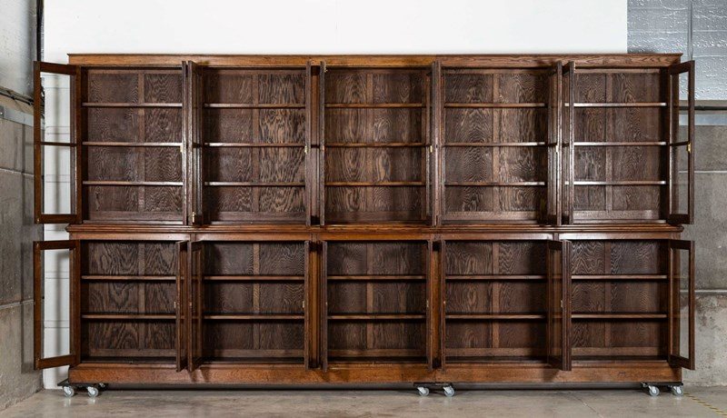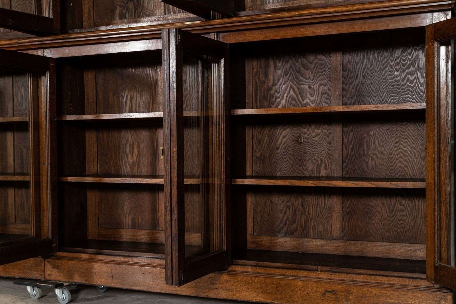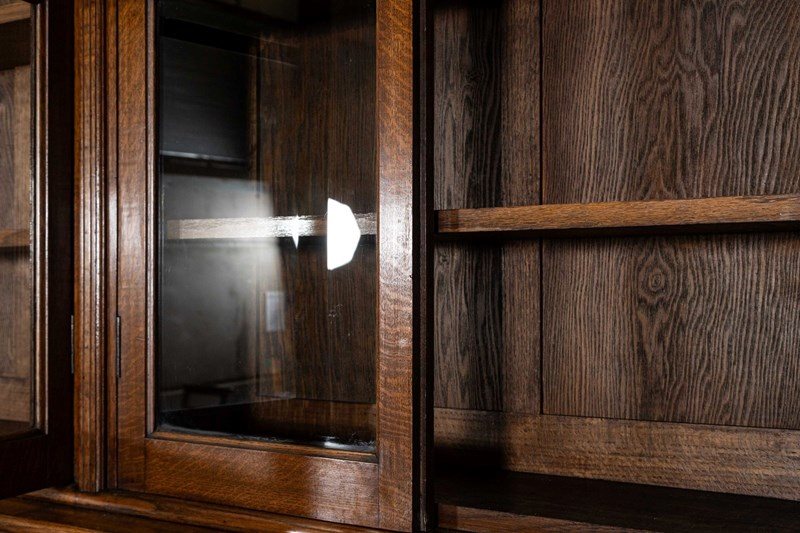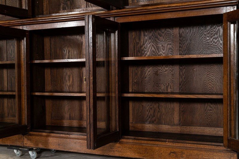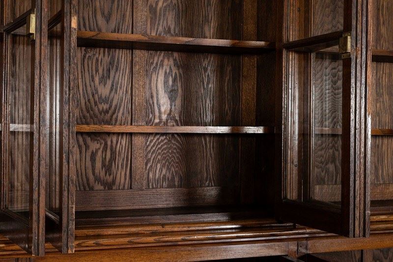 Monumental 19thC Oak Glazed Library Bookcase
