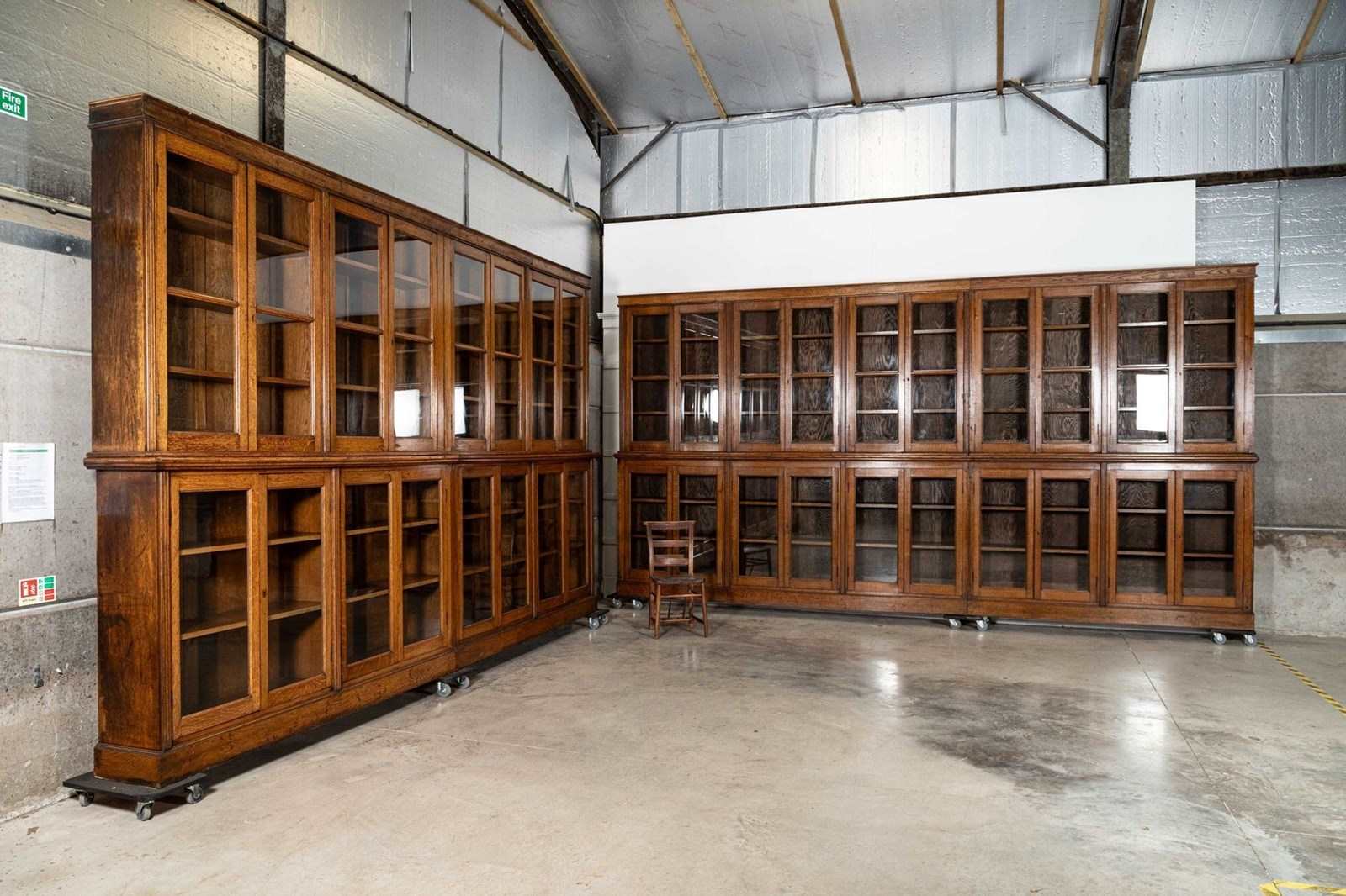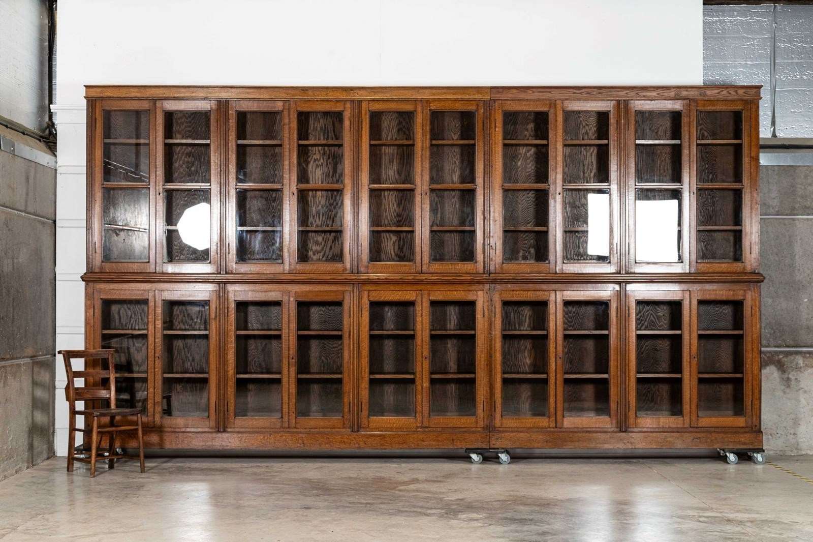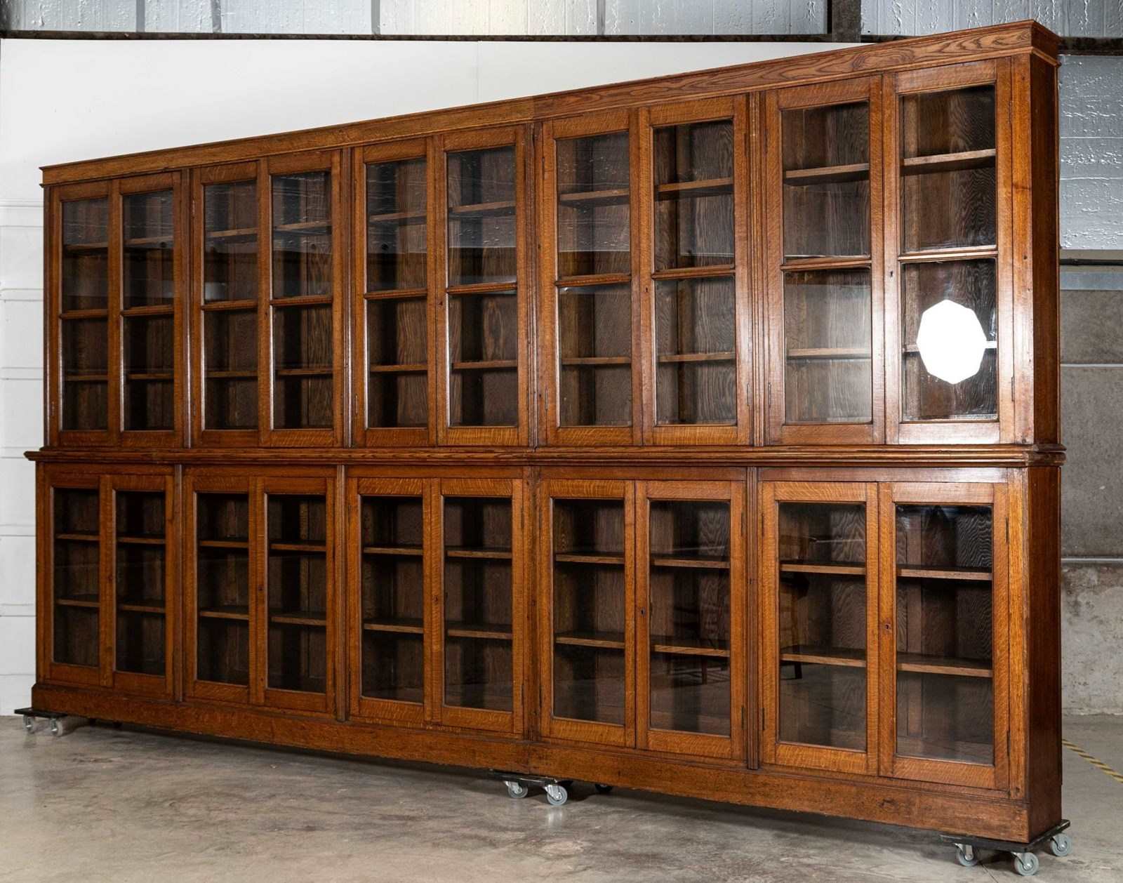 Monumental 19thC Oak Glazed Library Bookcase
