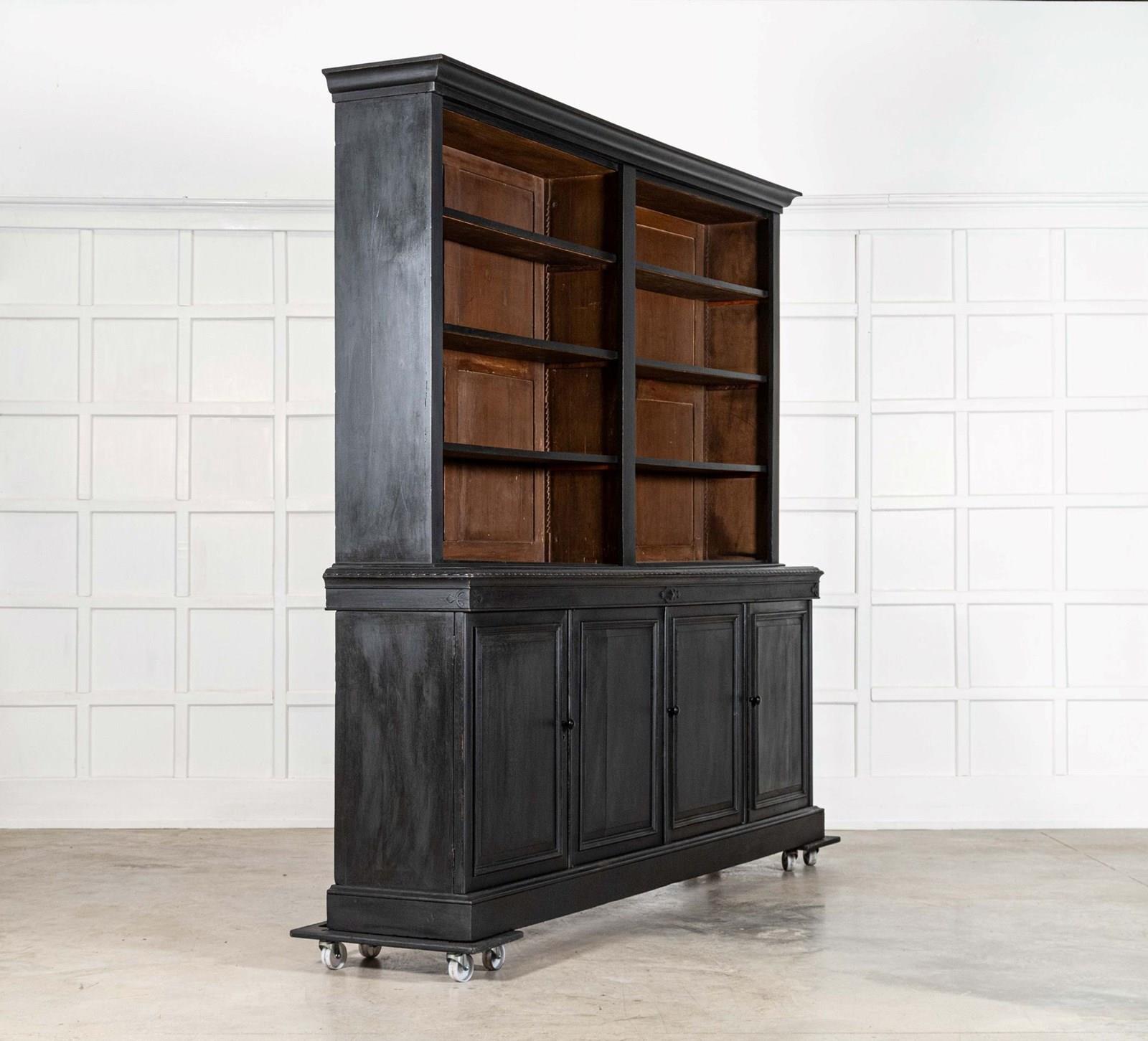 Monumental Ebonised 19thC English Oak Library Bookcase