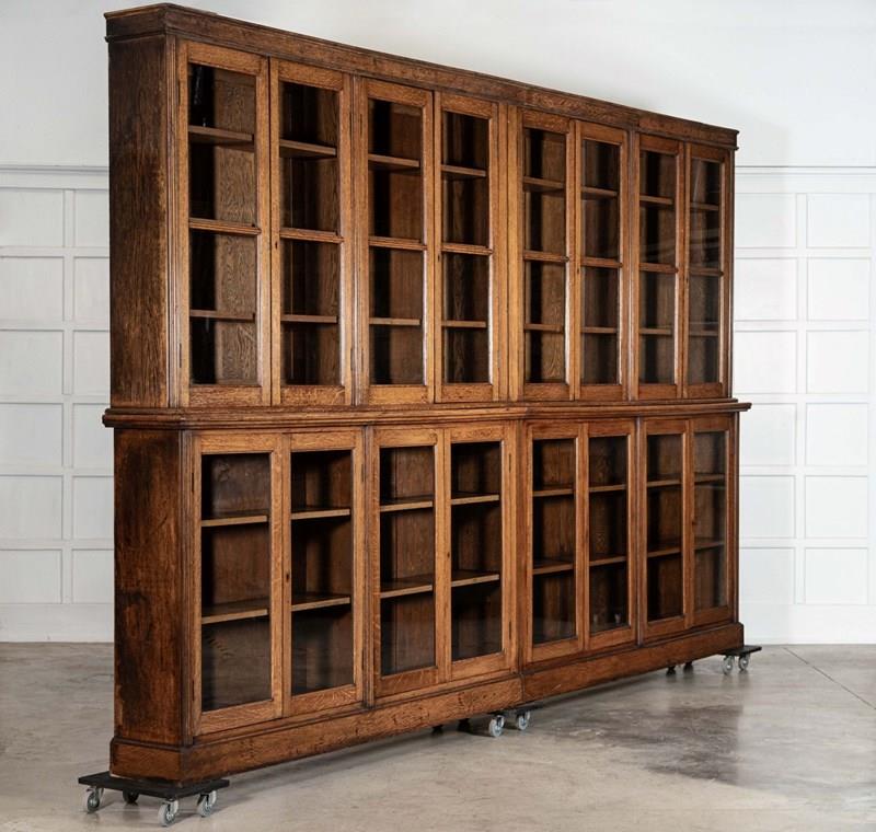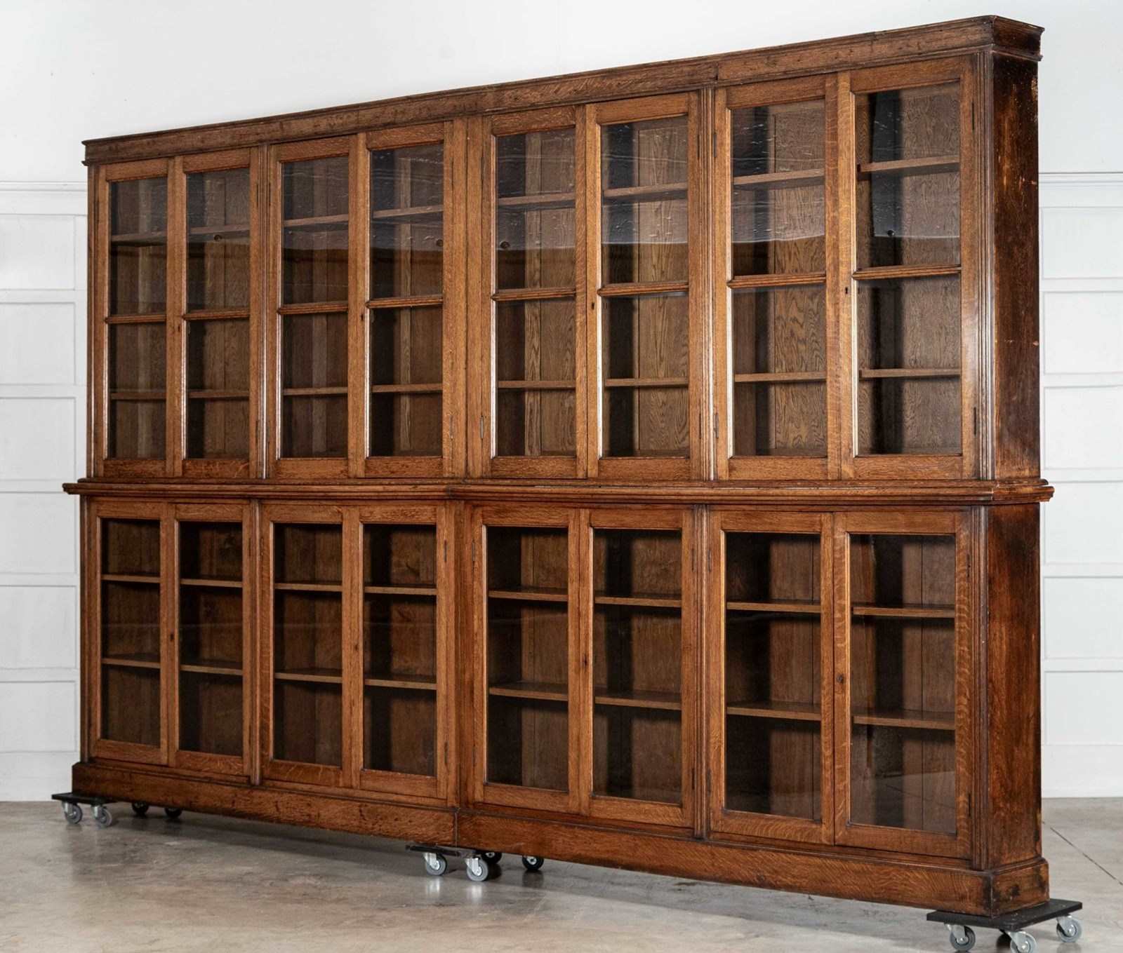 Monumental English 19Thc Oak Glazed Library Bookcase