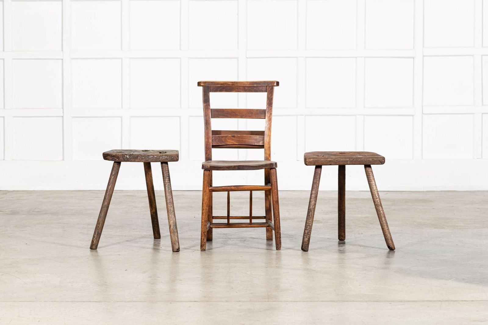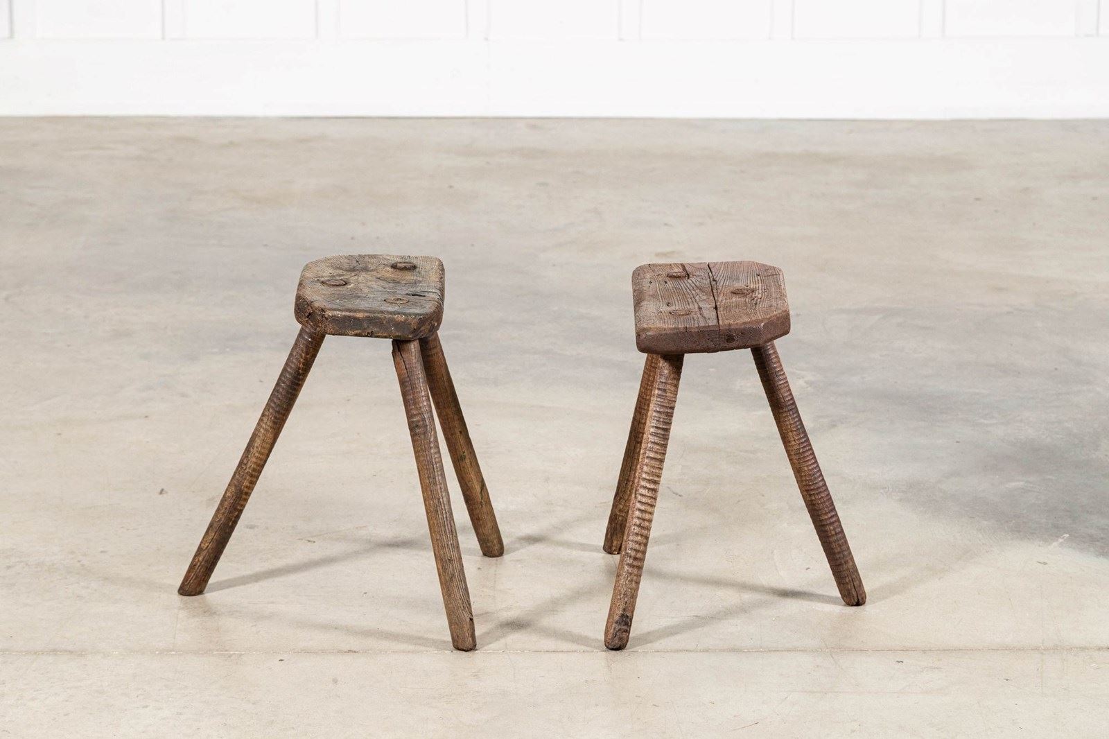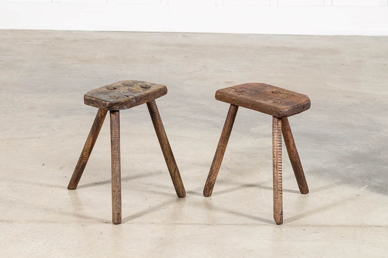 Pair 19thC English Elm Cutler Stools