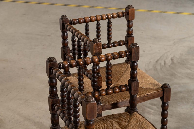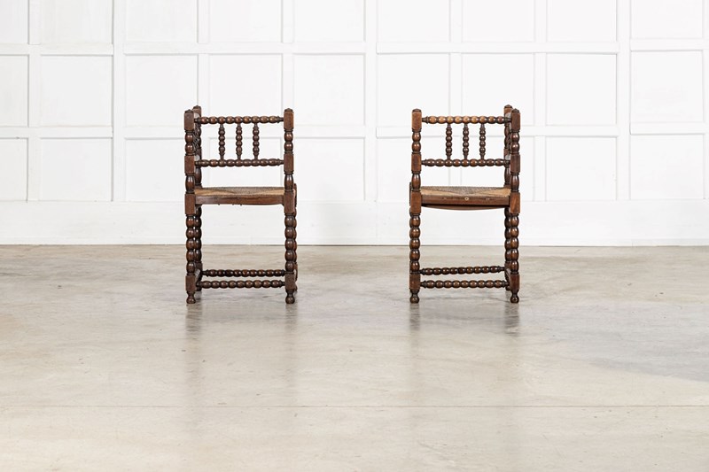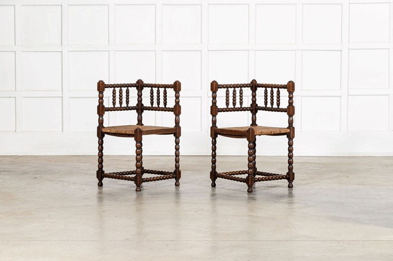 Pair English 19Thc Beech Bobbin Corner Chairs
