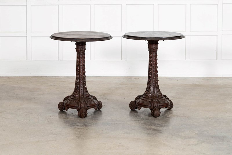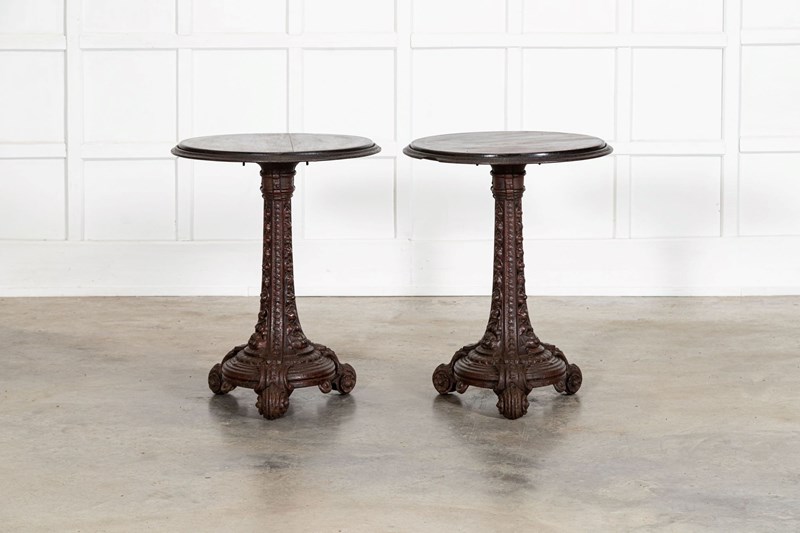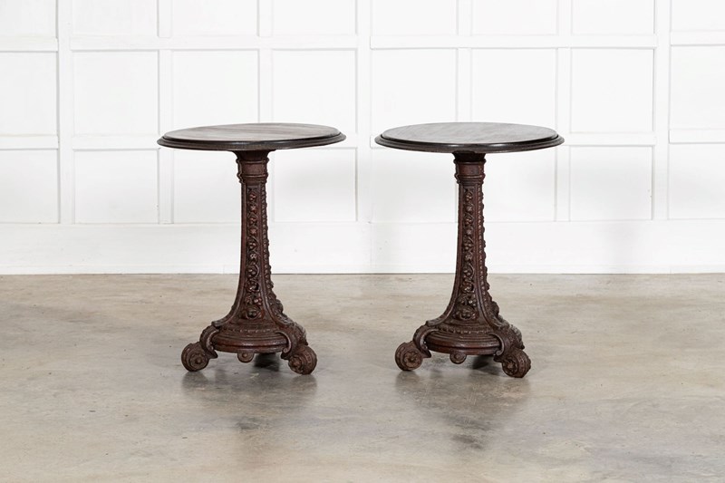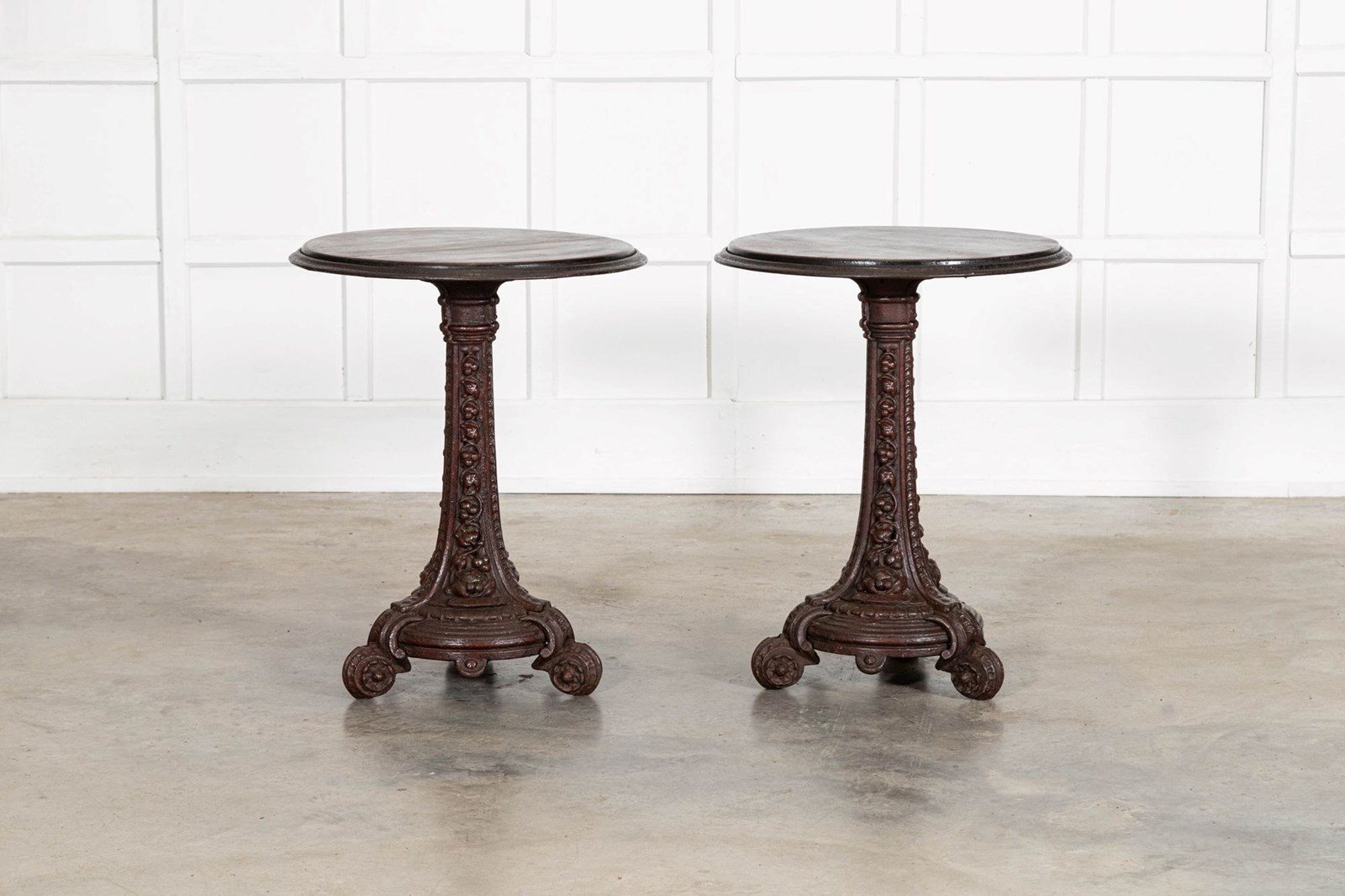 Pair English 19thC Mahogany Painted Cast Iron Tavern Tables