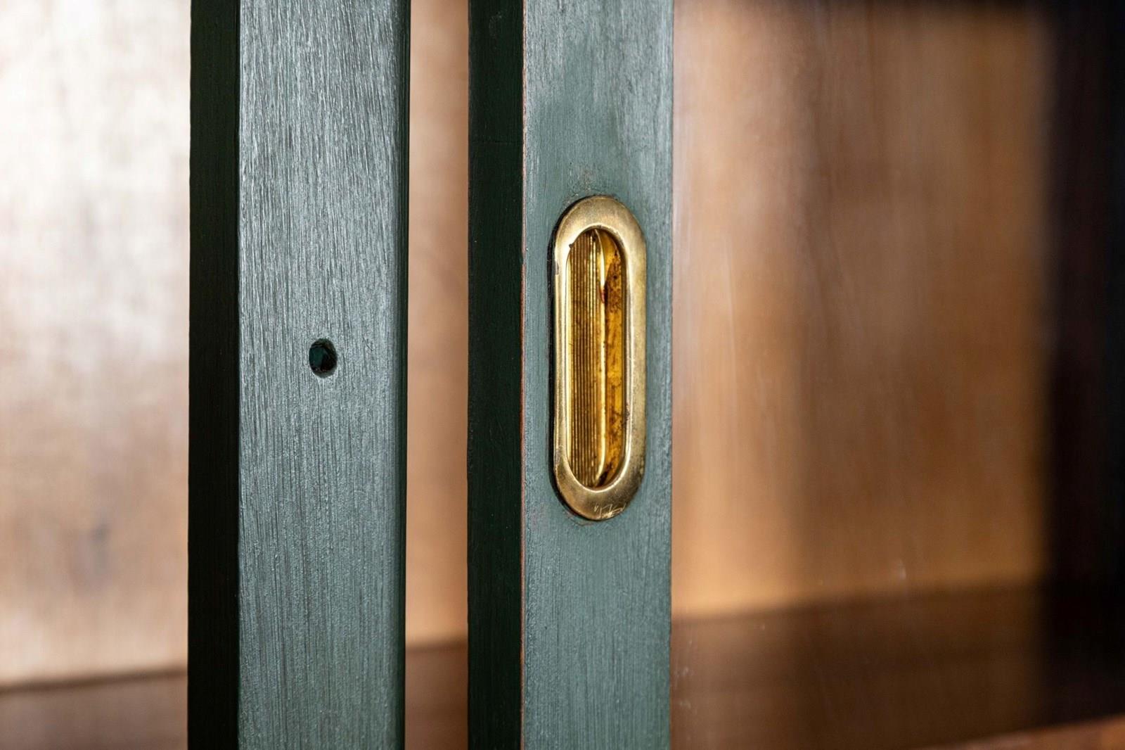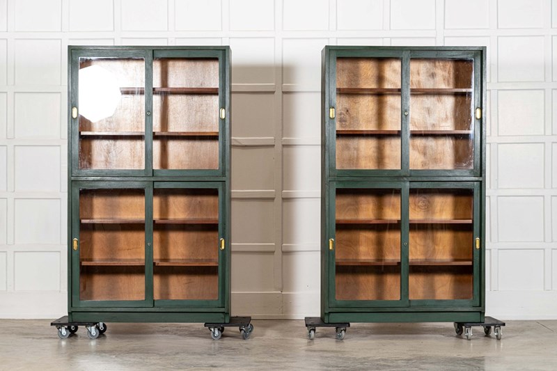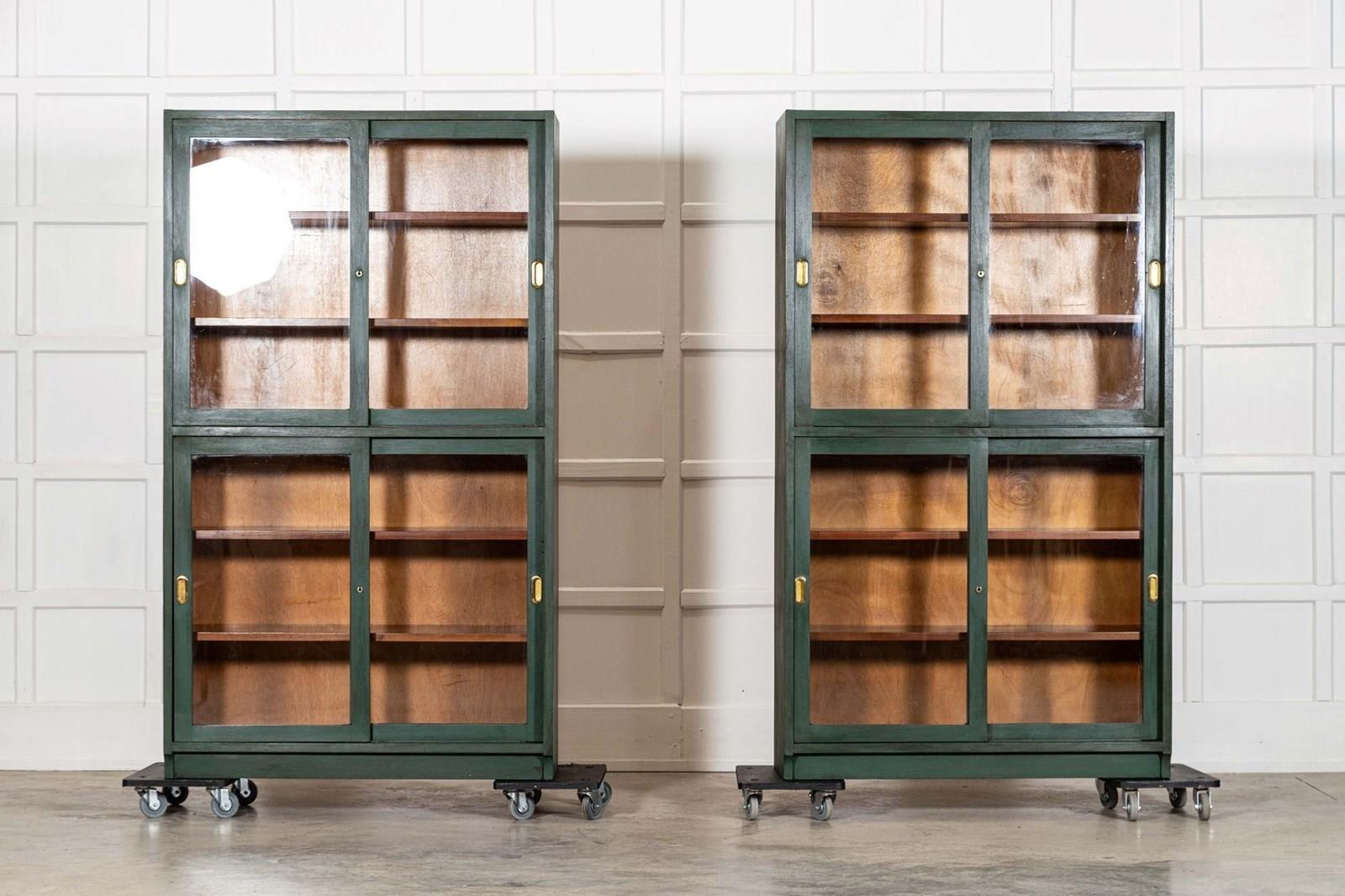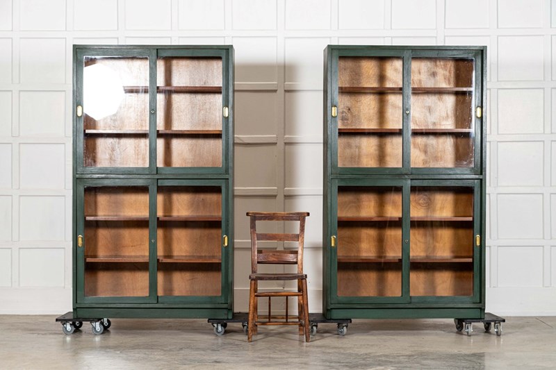 Pair English Painted Mahogany Glazed Bookcase Display Cabinets