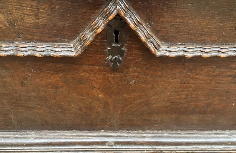 A charming 17th Century French provincial oak coffer, from Anjou in the Isere region.