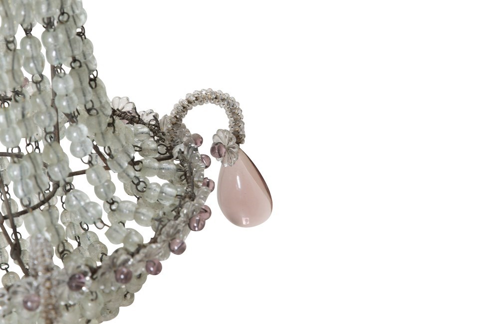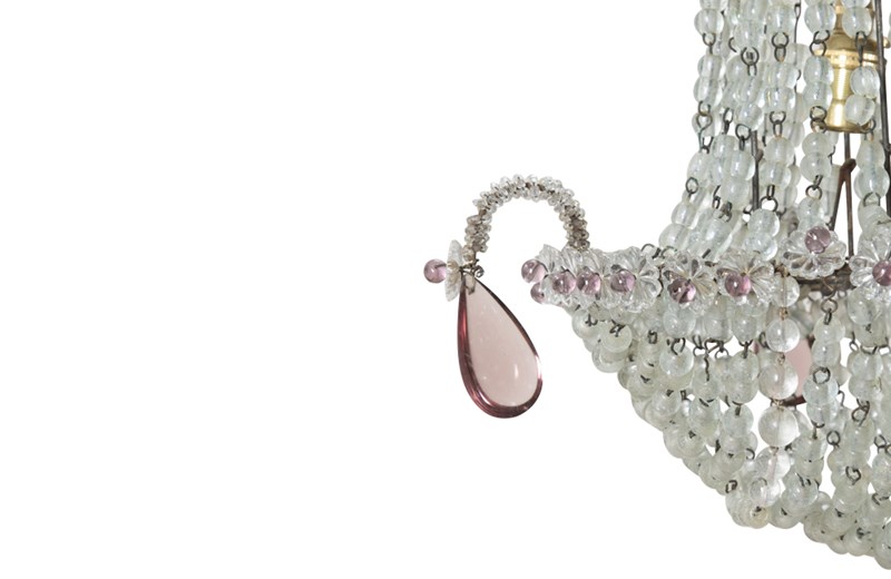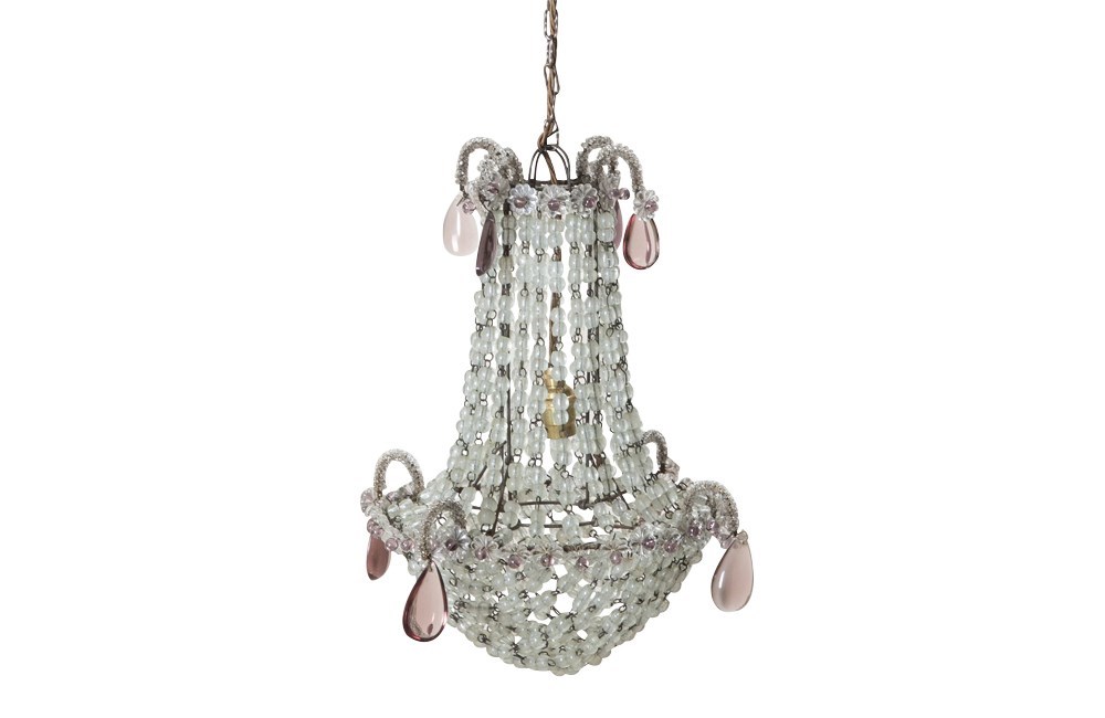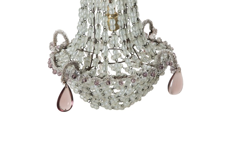 Charming, French hanging light with crystal beads and amethyst glass drops.