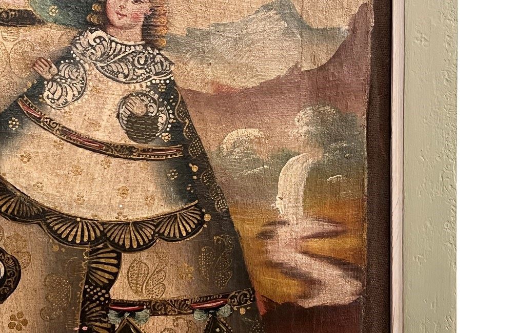 The Cusco School came about alongside the Spanish conquest of Peru in the 1530’s and lasted through the 18th century. As a means of converting the newly subdued Incas to Catholicism, the Spanish came to rely on religious artwork that intertwined Catholic themes with indigenous iconography. Though this type of painting was what the Spanish had in mind when they taught the indigenous artists how to paint with oils, the natives took their skills in new directions. In the process, they came to be referred to as The Cusco School for their unique, distinctly Cusqueña, style and choice of subject matter.