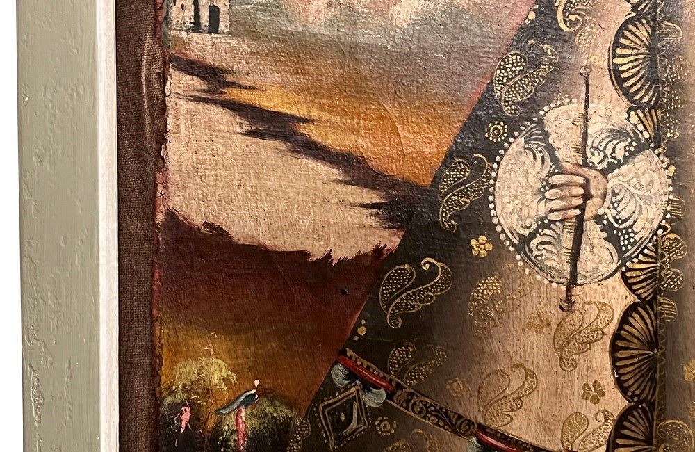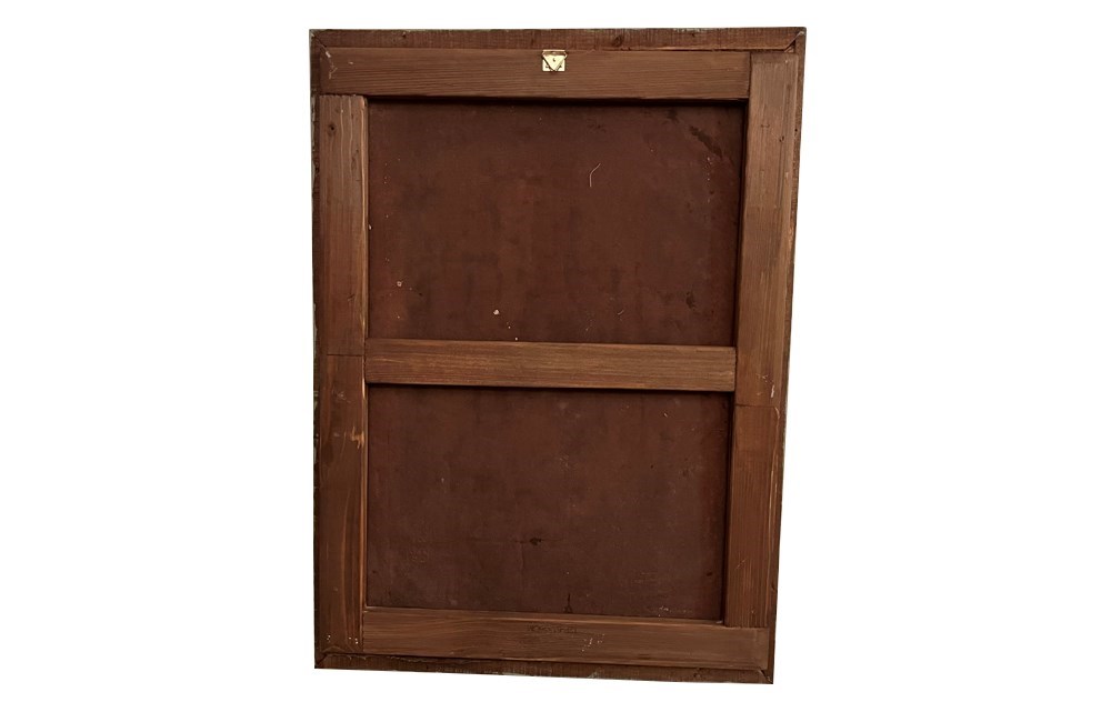 This beautiful oil on canvas painting has been conserved on a wooden chassis and placed in a simple wooden painted frame.