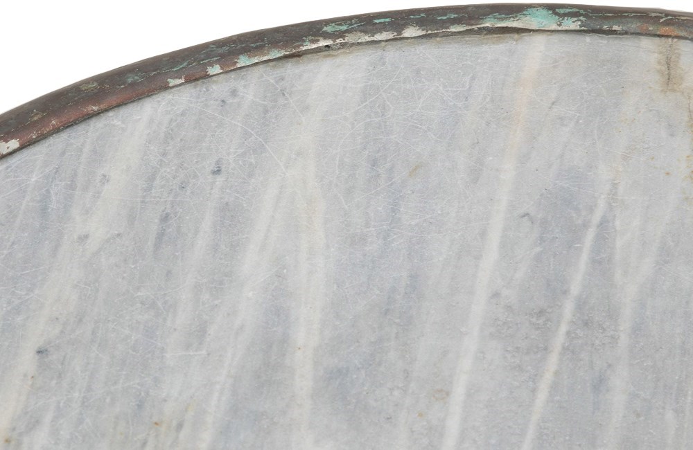 Some blemishes and wear to marble commensurate with age and use.