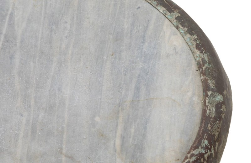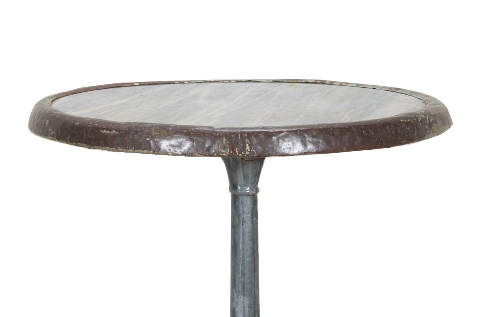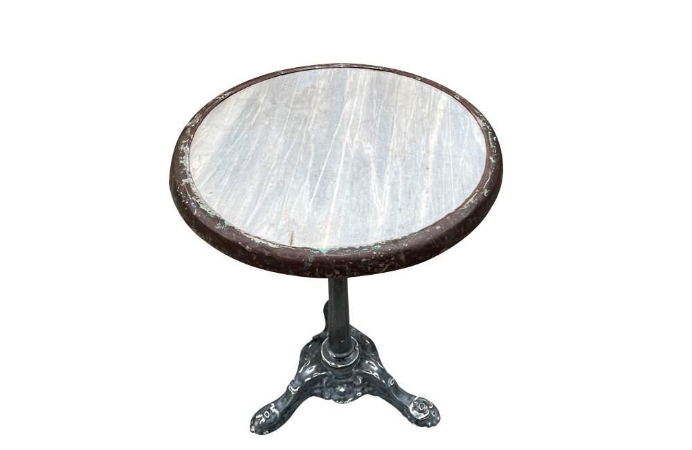 19th Century French bistro table with round grey marble top with brass surround.