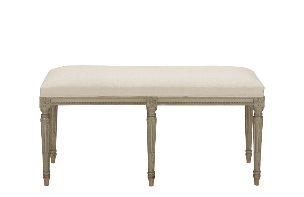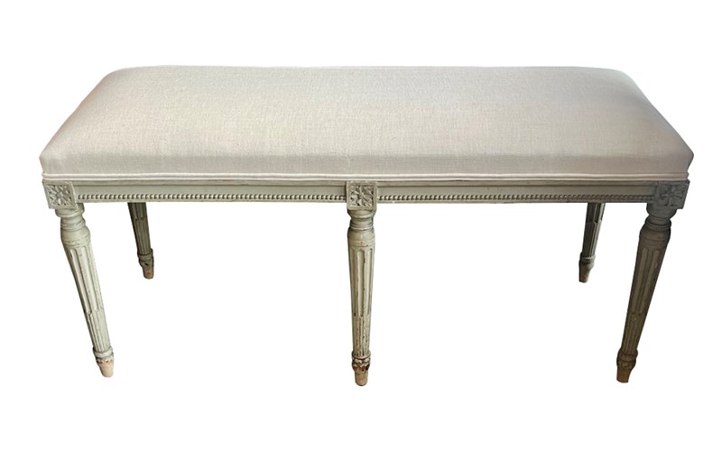 Elegant late 19th Century French painted bench in the style of Louis XVI.