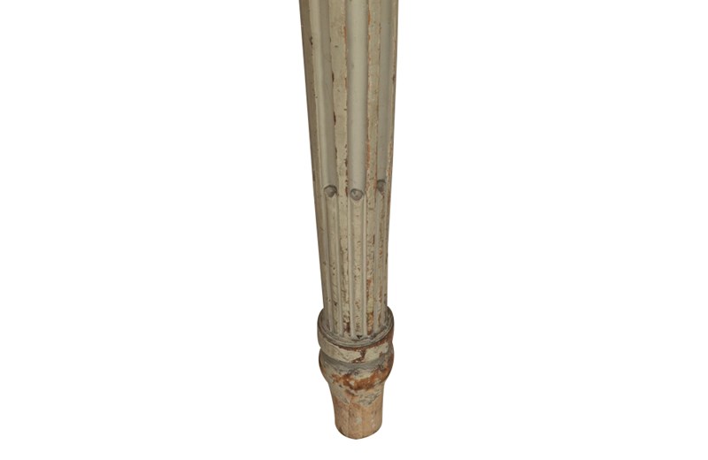 With Neo-Classical decoration, the apron has carved beading and the six reeded tapered legs are embellished with carved rosettes to the top.