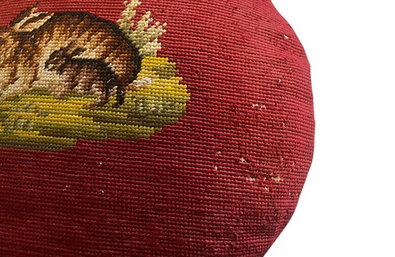 19Th Century French Round Needlepoint Cushion