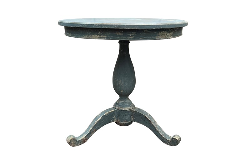 19th century Swedish or Scandinavian round table on a turned central pedestal with a tripod base.