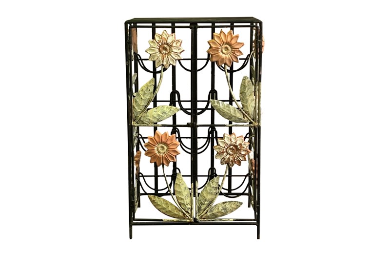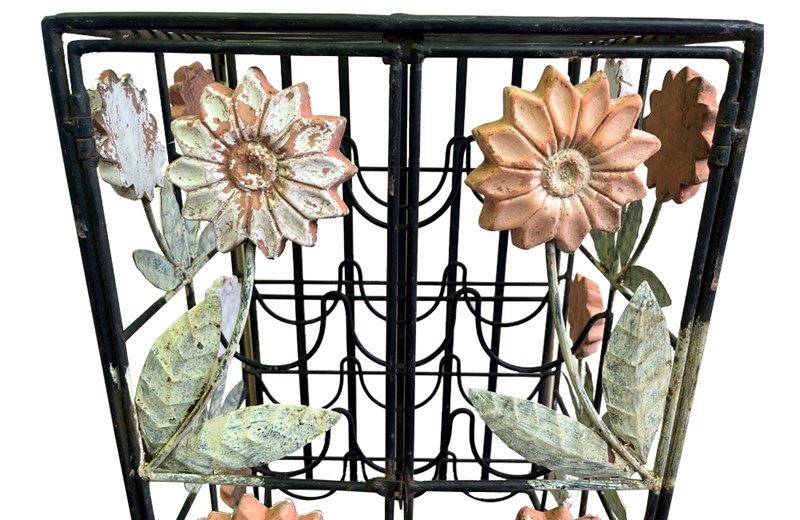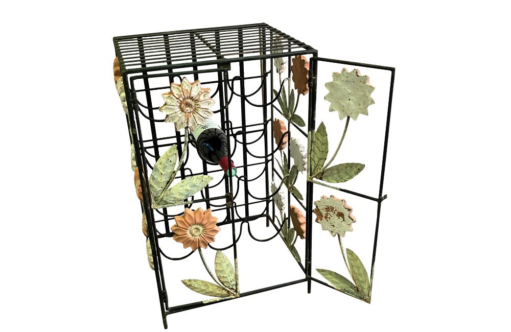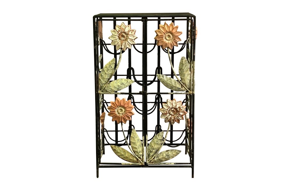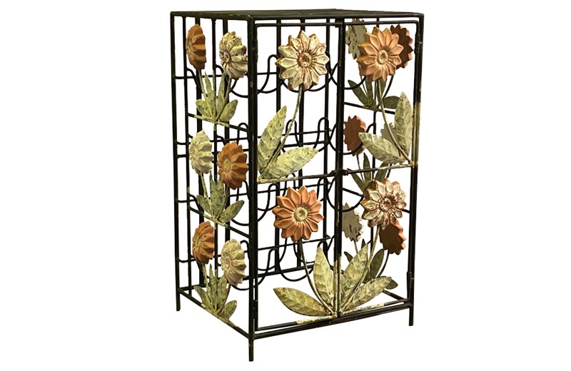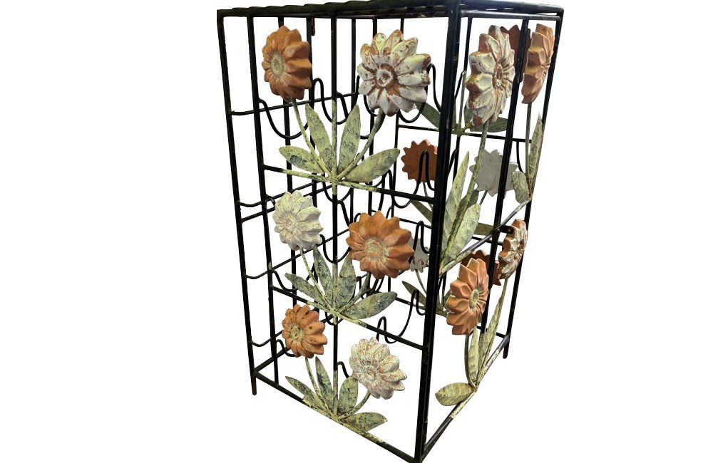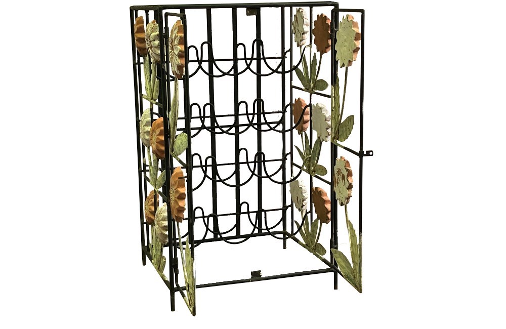 With twelve bottle cradles and two doors. Three sides are embellished with glazed terracotta flowers.