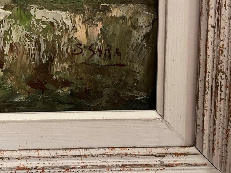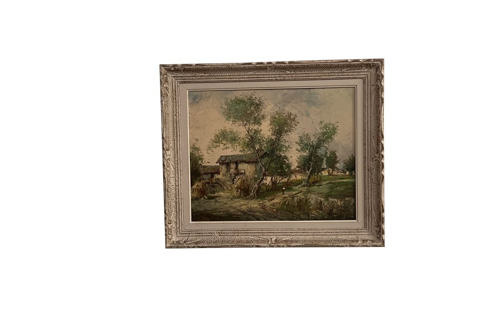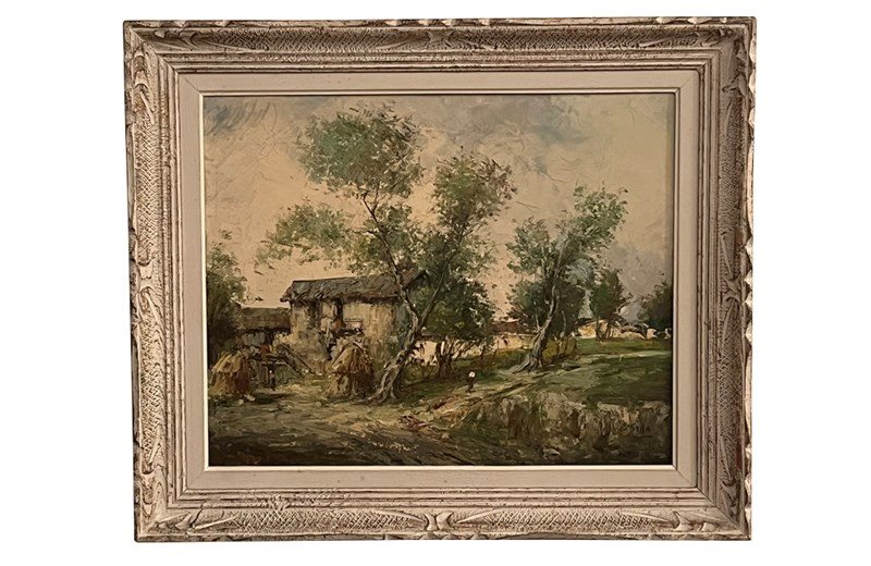 20Th Century French Framed Oil Painting 'Farmhouse With Haystacks'