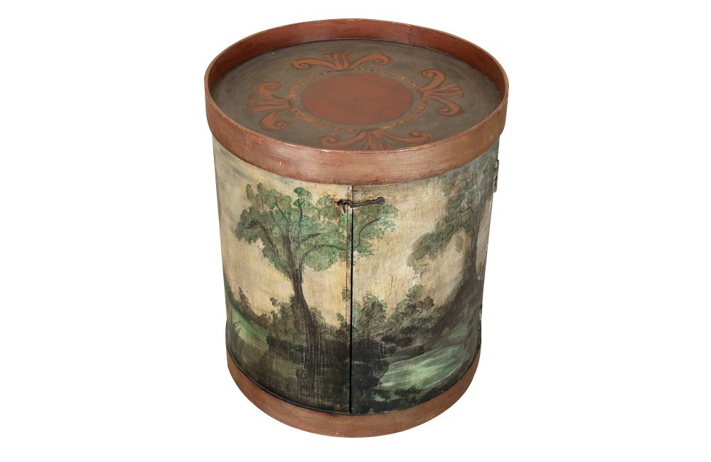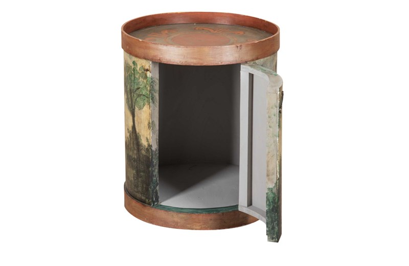 20Th Century French Hand-Painted Decorative Drum Cupboard