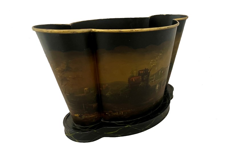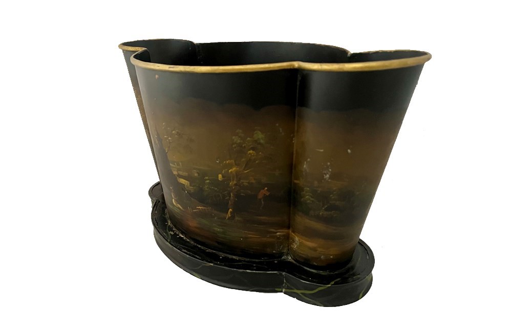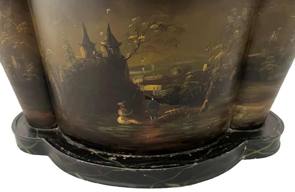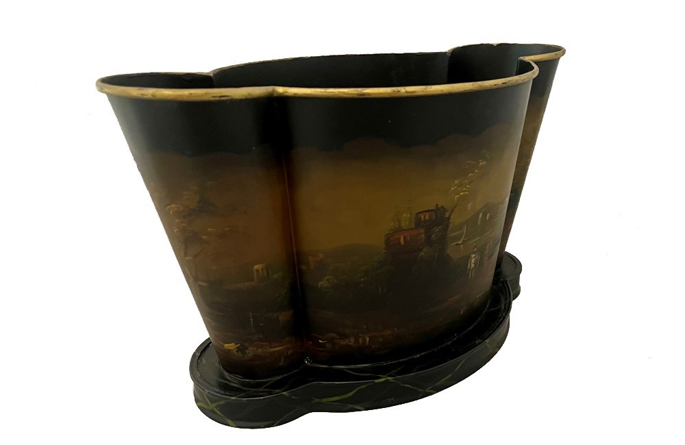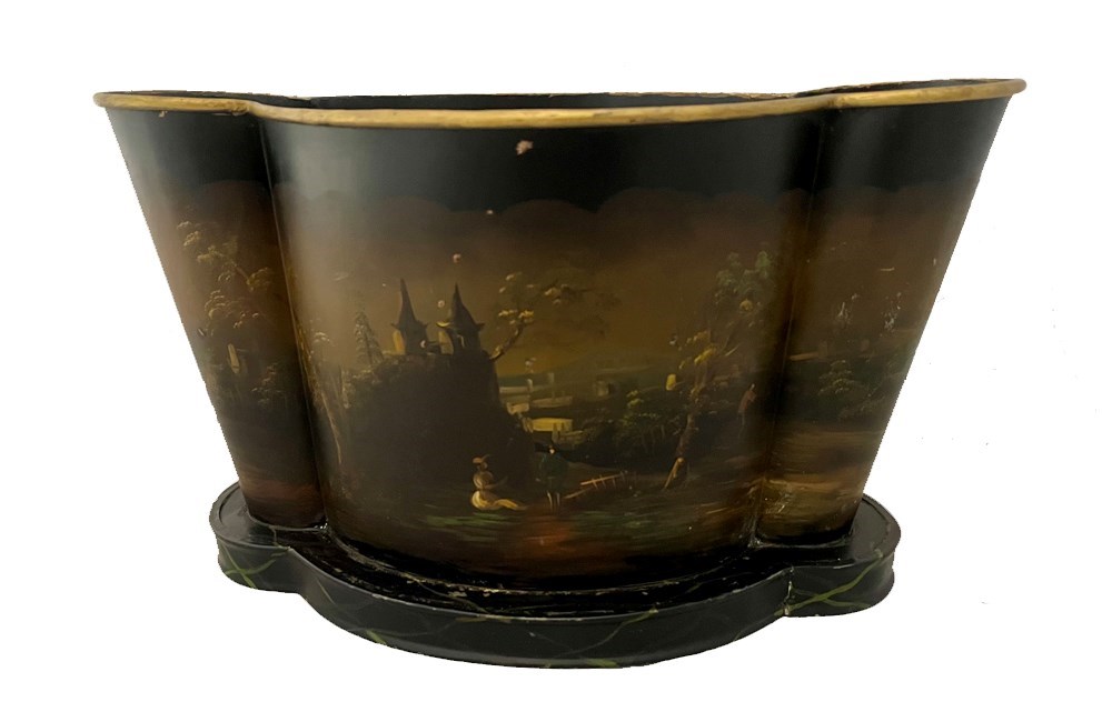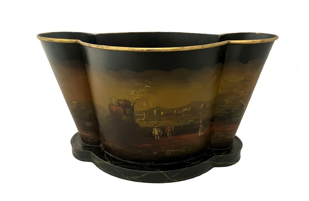 Decorative painted tole wine cooler or cache pot. Mid 20th century