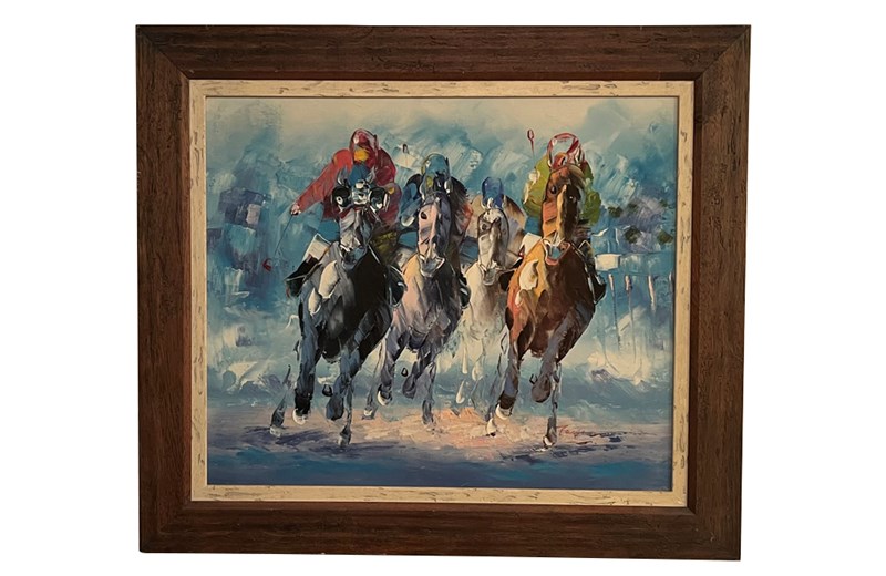 20Th Century Oil On Canvas Painting 'The Horse Race'