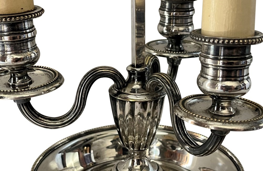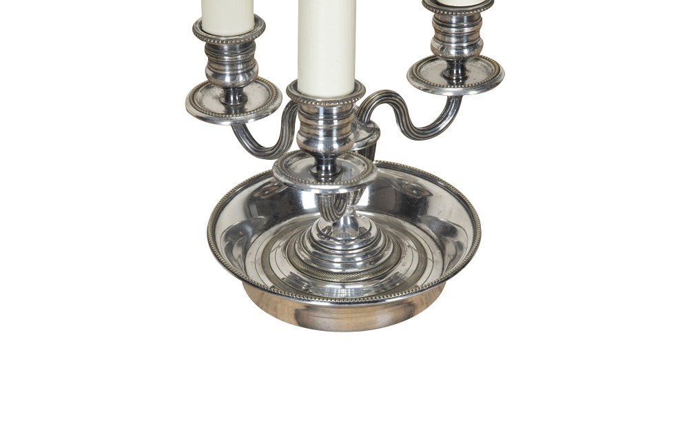 Elegant mid-20th Century French silver-plated bouillotte table lamp.