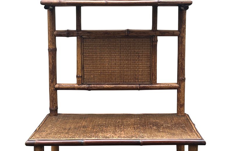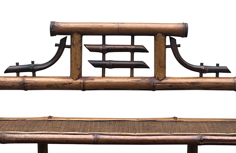 This decorative display stand is crafted from natural bamboo with a warm honeyed patina, the design features a decorative chinoiserie style top rail. Circa 1920