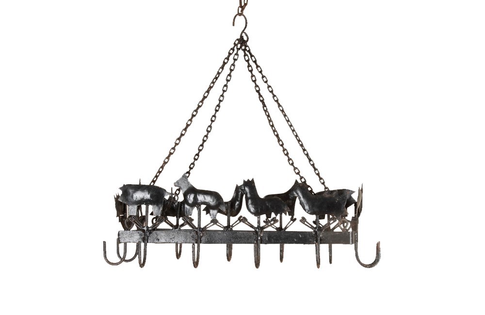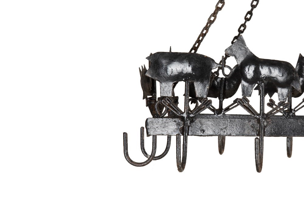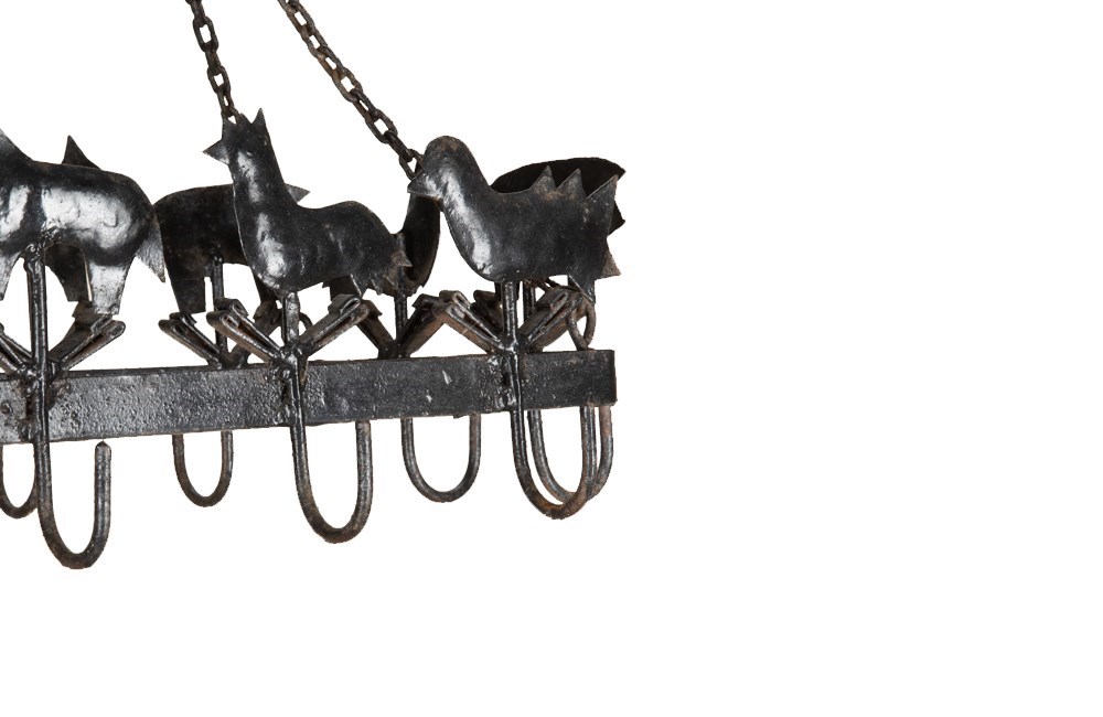 With twelve hooks in total, ornamented with twelve charming naive animal motifs comprising of three pigs, three horses, three chickens and three birds.