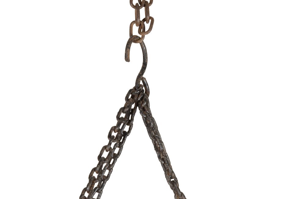 A perfect piece to hang above a kitchen island and display copper pots and pans. It hangs from four chains joined to a central ceiling hook, the height (50cm) including chain.