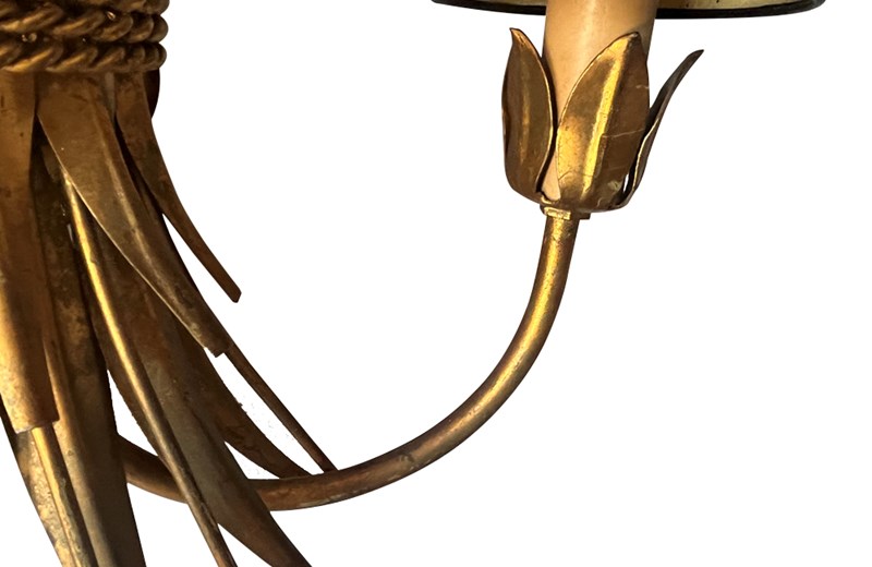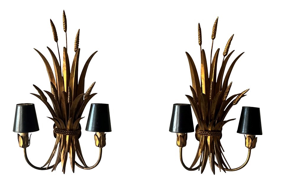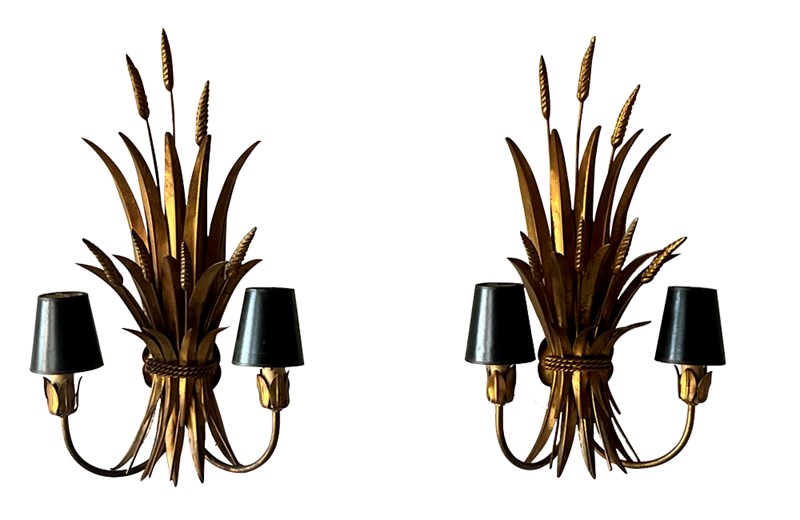 Exceptional Large Pair Of Gilt Metal Wheat Sheaf Wall Lights