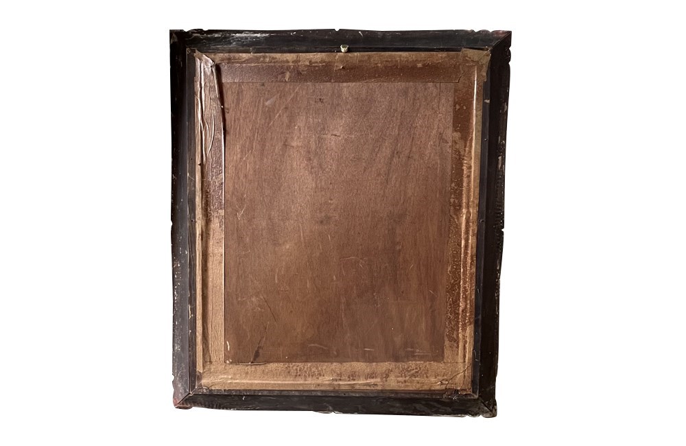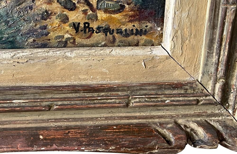 The painting is signed “V. Pasqualini” lower right and is housed in a decorative carved wooden frame with visible age and patina.