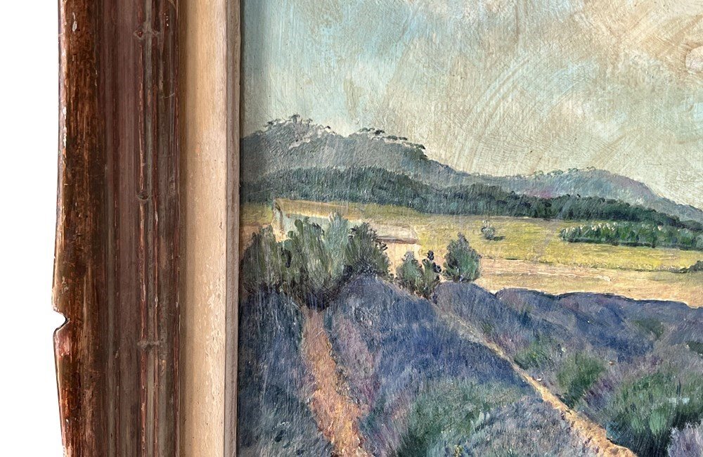 Framed French Oil Painting 'Lavender Field, Provence'