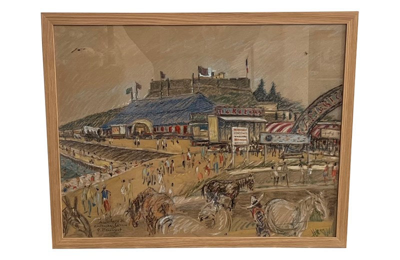 20th Century French framed pastel on paper of a Circus in Antibes, French Riviera.