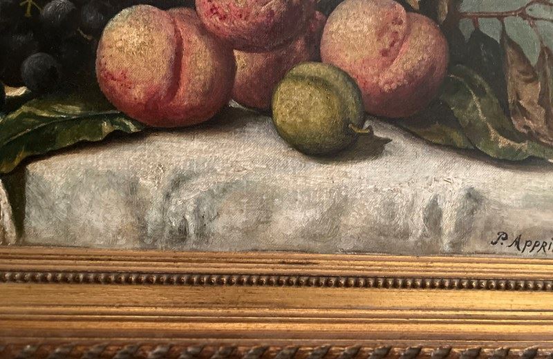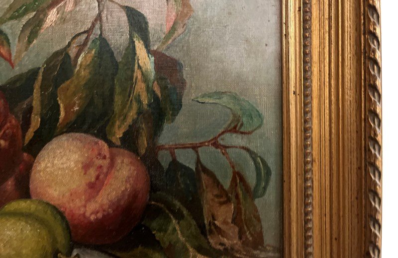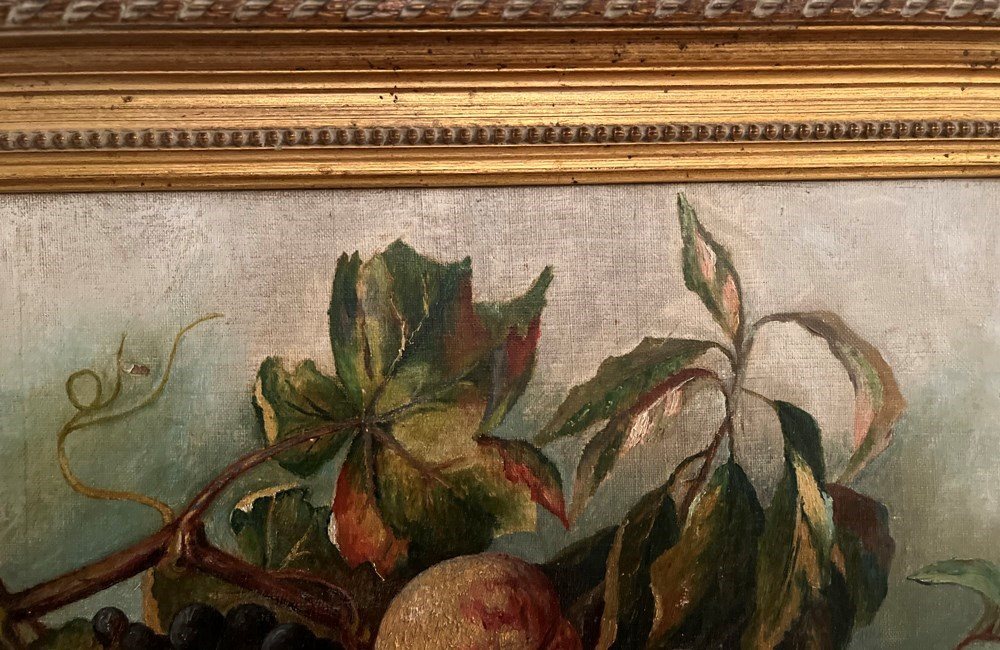 French Framed Still Life Oil Painting 'Grapes And Peaches'