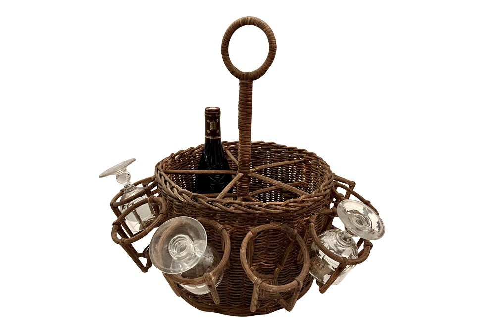 With four divided bottle compartments. The surround bears eleven drinking glass holders.