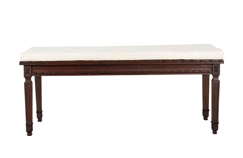 This beautiful bench is also suitable as a window seat and is ideal at the foot of a bed, in an entry hall, dressing room, or salon, where it offers both functional seating and understated decorative elegance.