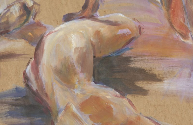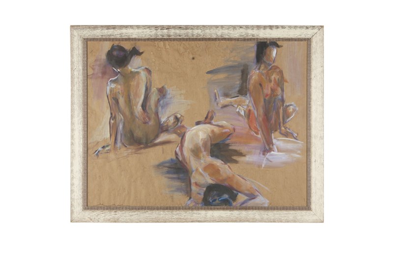Large 20Th Century French Framed Painting 'Study Of Three Nudes'