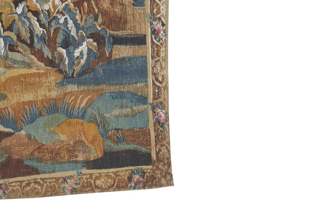 After the original 18th Century Aubusson tapestry at the Musee Mobilieri National. Cotton linen backed with hessian. Screen printed by hand in the Paris workshops of the renown Artis Flora. With the label of Artis Flora 9/82.