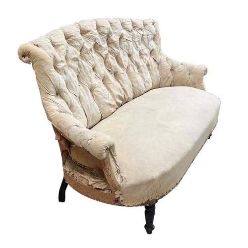 Large French footstool in the Louis XV style with feather-filled cushion upholstered in ticking. Mid 20th century