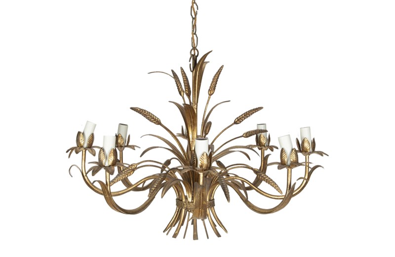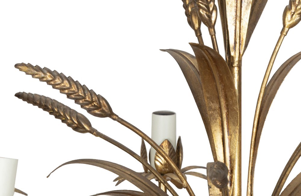 Large Mid-Century French Gilt Tole Wheat Sheaf Chandelier