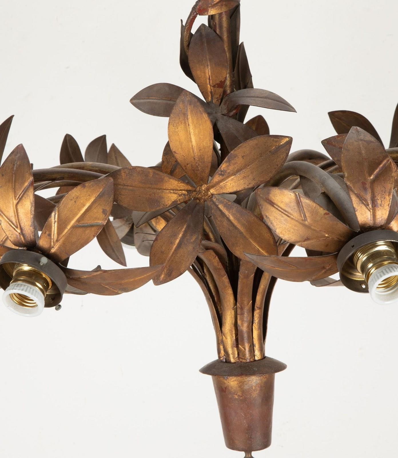 Large gilt metal Spanish hanging light with floral and foliate decoration.