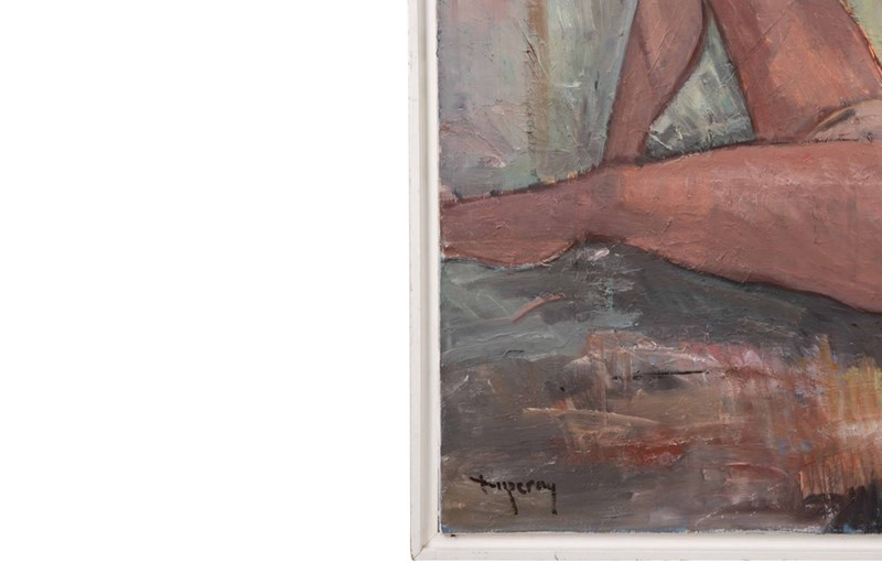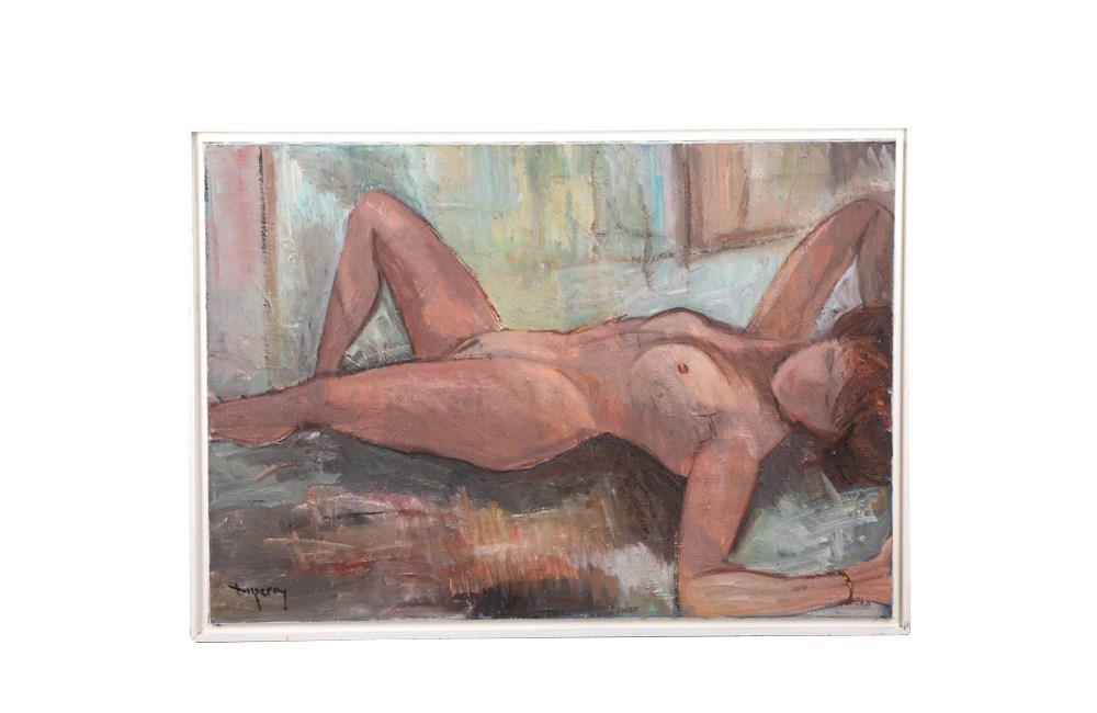 Large framed oil on canvas painting of a nude reclining female figure. Signed Duperay to the lower left.