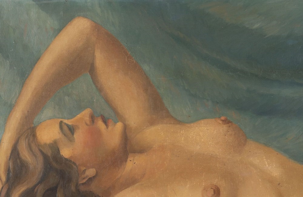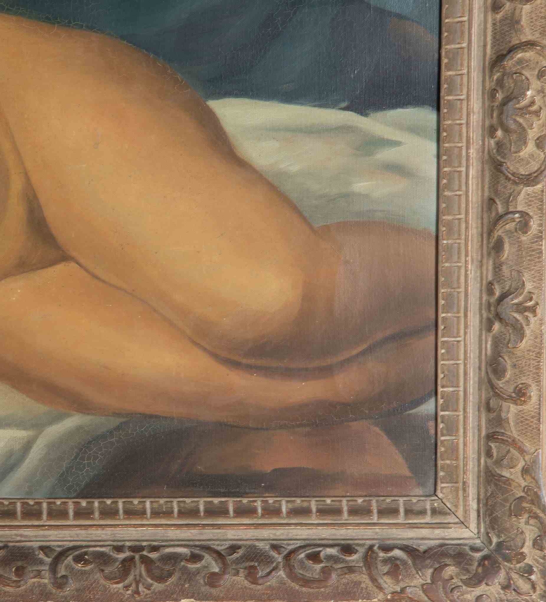 Large 20th Century French School Montparnasse reclining nude painting, signed G. Besancenot and dated 1932.