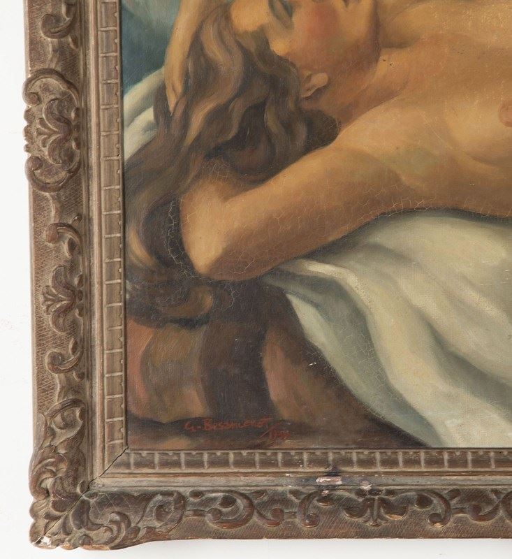 Large Painting Of A Reclining Nude Female Figure By G. Besancenot