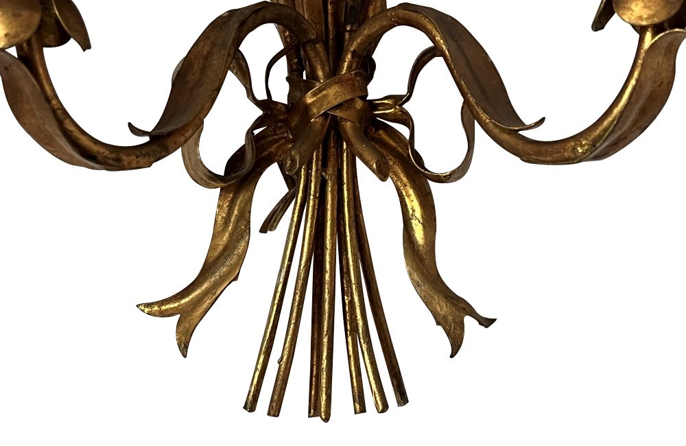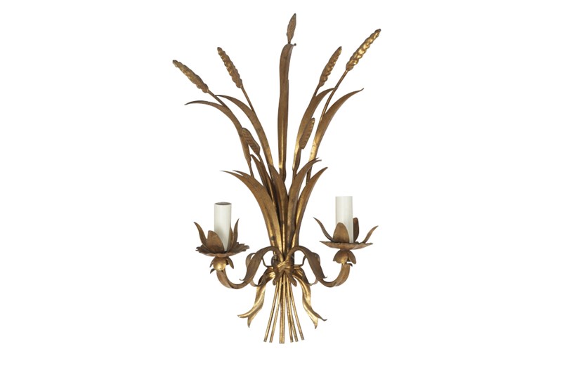 Large Pair Of Gilt Metal Wheat Sheaf Wall Lights