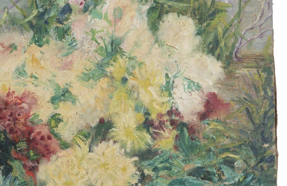 Large, late 19th Century, French oil on canvas painting of a garden with a view of Avignon.