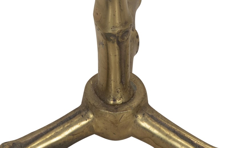This timeless piece features a rare flattened, thick tripod base supporting a thick faux bamboo stem upright.
