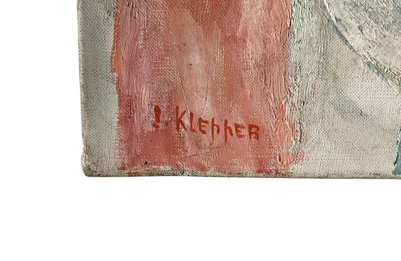 Both charming and painterly, the work exemplifies the enduring appeal of mid-century still life painting in the Post-Impressionist tradition. Oil on canvas. Signed lower left, unframed.