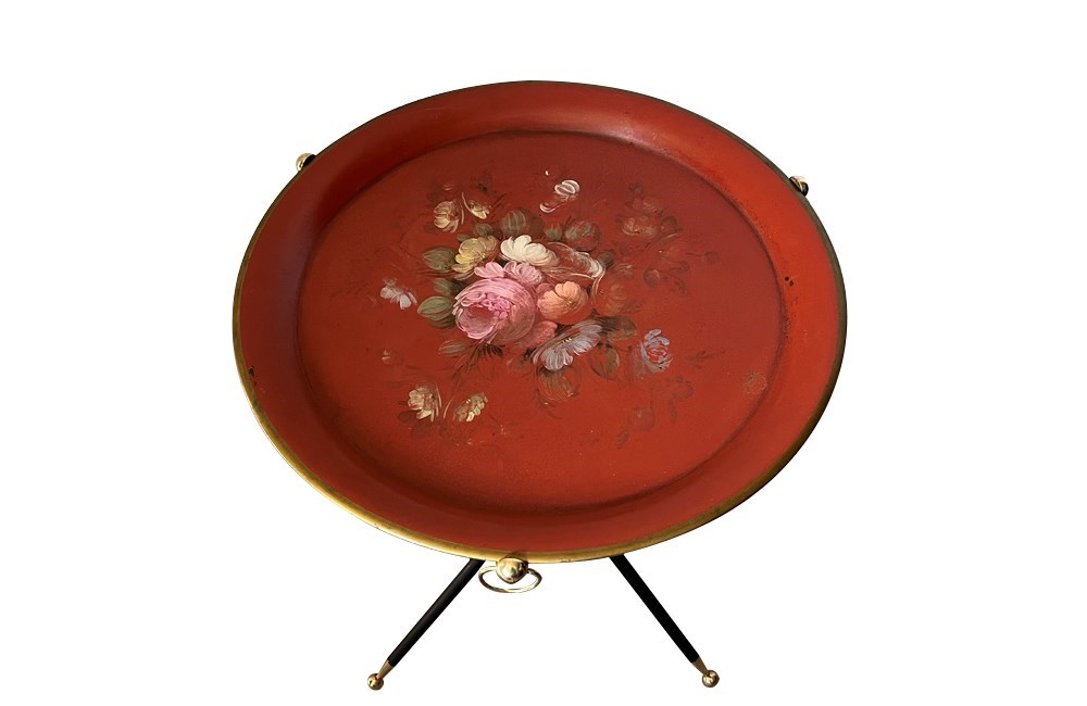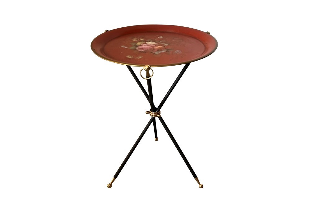 Mid Century Folding Cocktail Table With Tole Tray