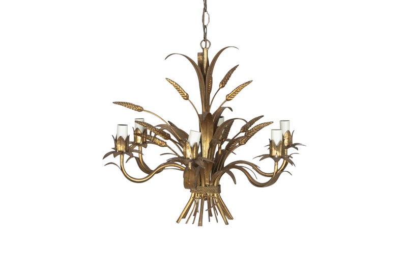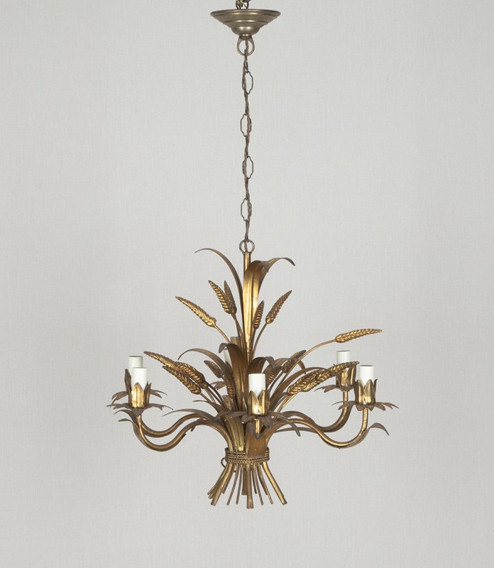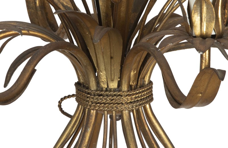 Mid-Century French Gilt Tole Wheat Sheaf Chandelier