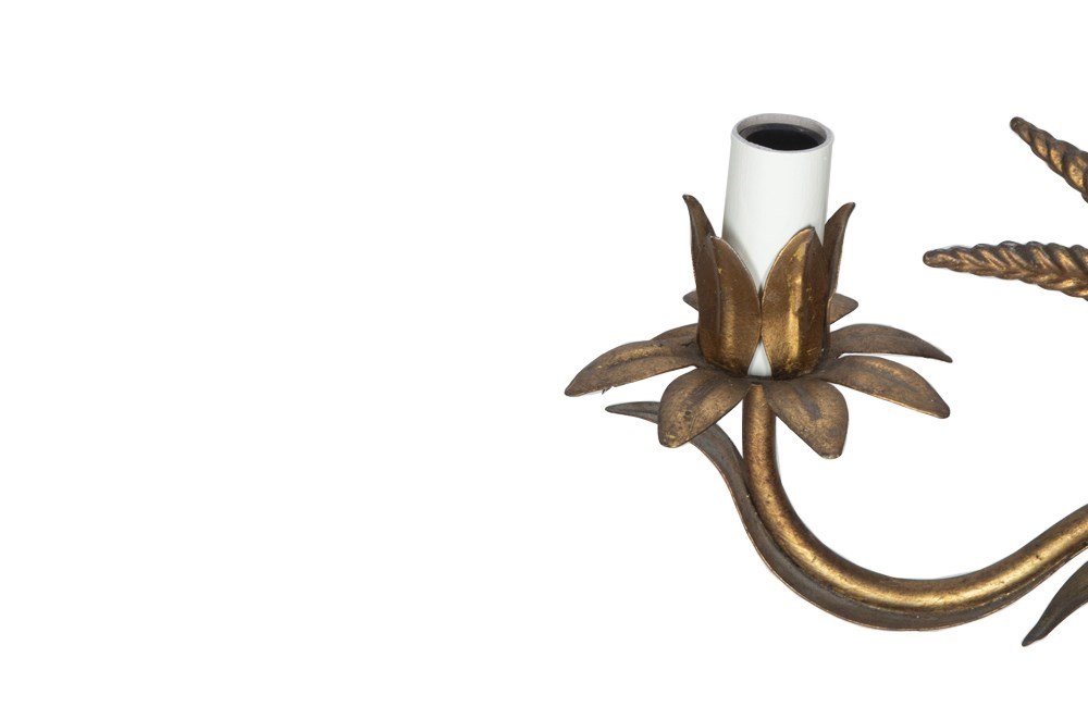 Mid-Century French Gilt Tole Wheat Sheaf Chandelier